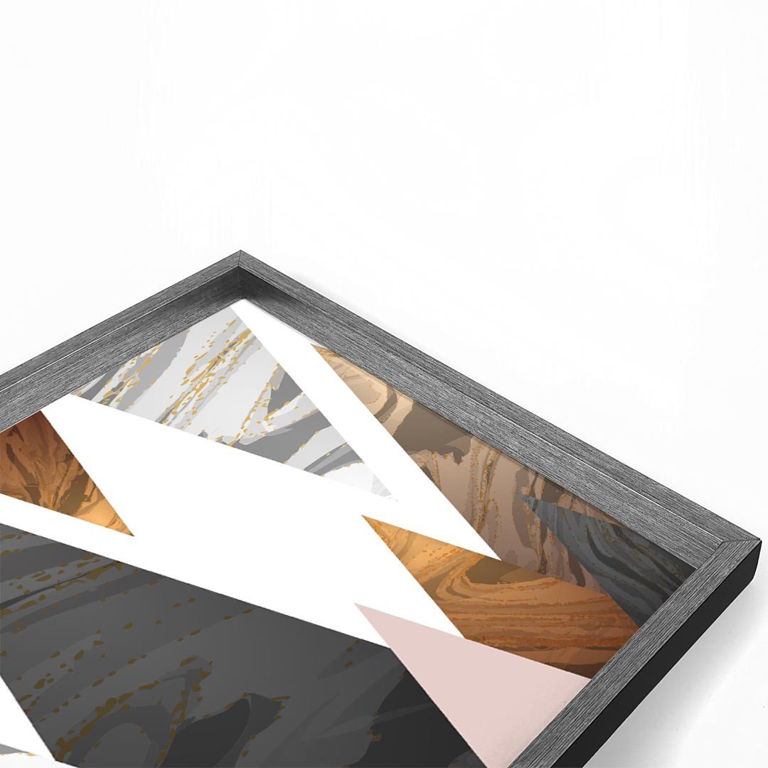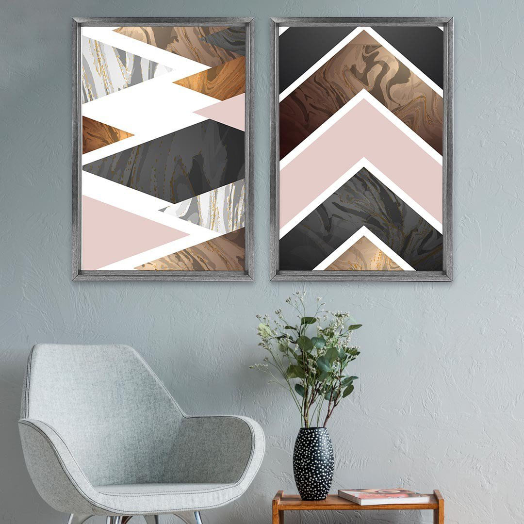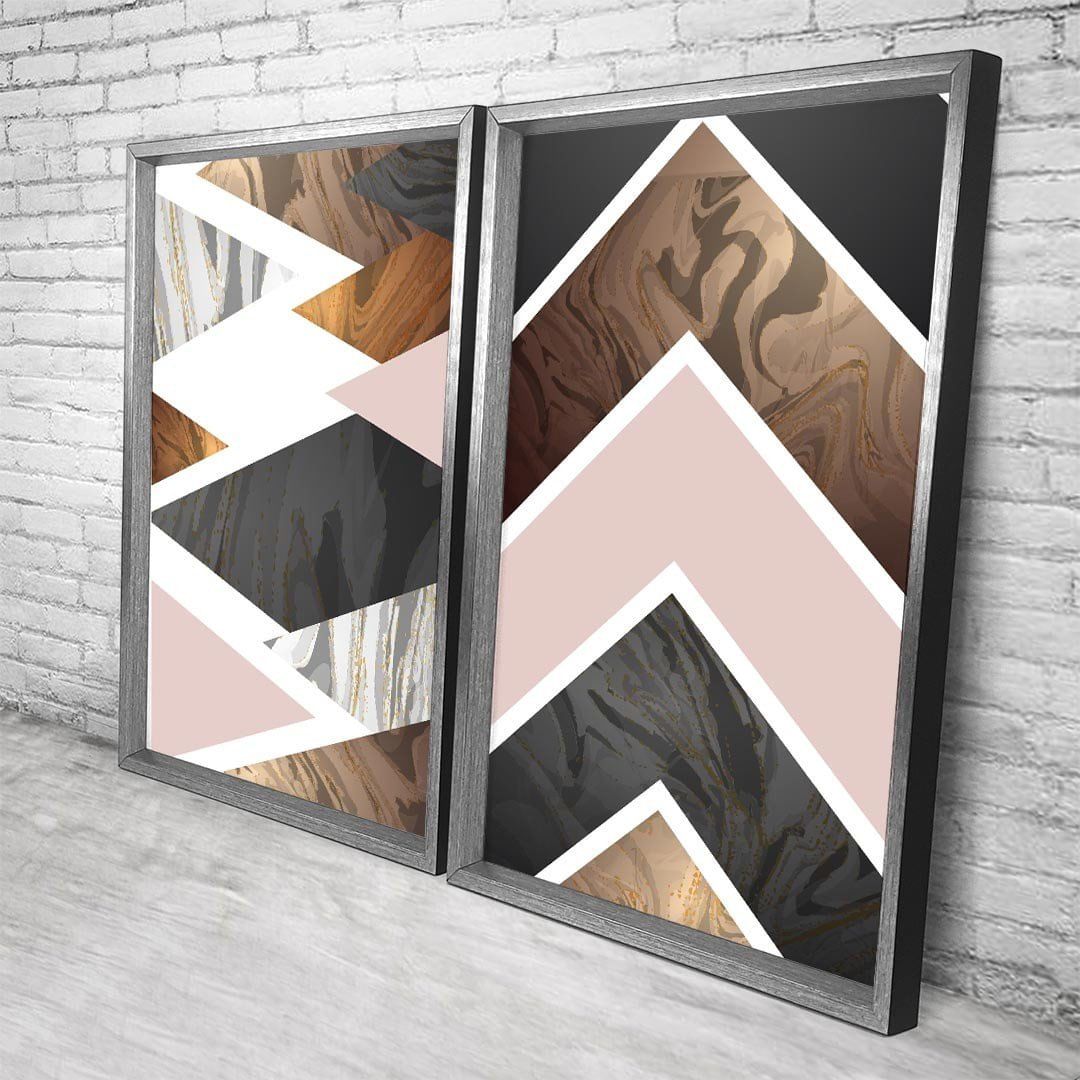 Quadro com Moldura Chanfrada Triângulos Marmore GRAFITTI METALIZADO - Grande - ...Características Gerais do Produto:.. Tamanho dos Quadros: - Tamanho Grande 90x122cm (60x90cm cada Quadro), - Tamanho Médio 60x82cm (40x60cm cada Quadro). Acabamento: Acabamento Selado, Moldura. Tecido: 100% Nylon. Estampa: Digital de Alta Qualidade, Aplicado por Termotransferência. Conteúdo da Embalagem: Conjunto 2 Quadros Decorativos. Gênero: unissex. Faixa etária: Acima de 13 anos...Garantia:.. Garantia contra defeito de fabricação