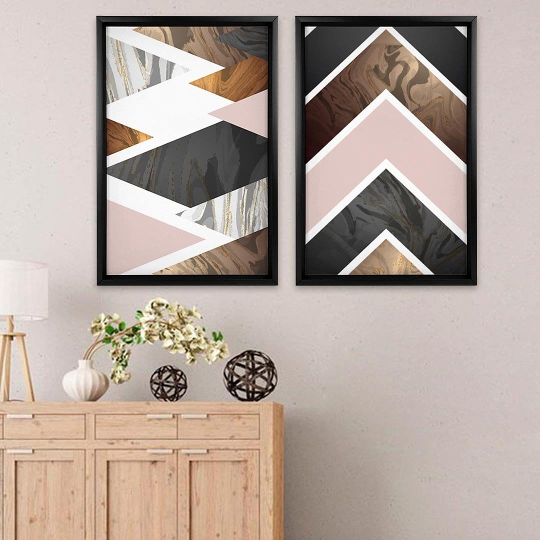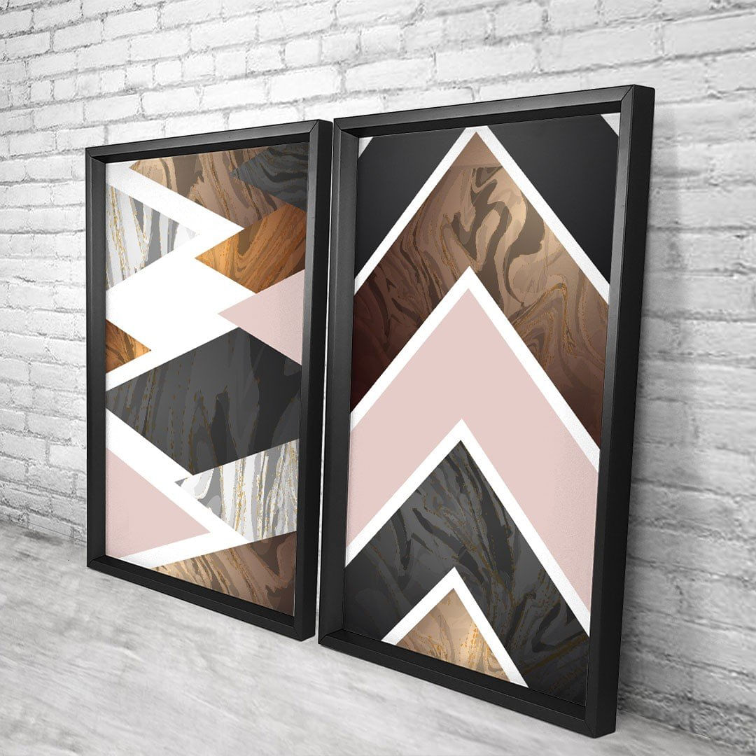 Quadro com Moldura Chanfrada Triângulos Marmore Preto - Grande - ...Características Gerais do Produto:.. Tamanho dos Quadros: - Tamanho Grande 90x122cm (60x90cm cada Quadro), - Tamanho Médio 60x82cm (40x60cm cada Quadro). Acabamento: Acabamento Selado, Moldura. Tecido: 100% Nylon. Estampa: Digital de Alta Qualidade, Aplicado por Termotransferência. Conteúdo da Embalagem: Conjunto 2 Quadros Decorativos. Gênero: unissex. Faixa etária: Acima de 13 anos...Garantia:.. Garantia contra defeito de fabricação