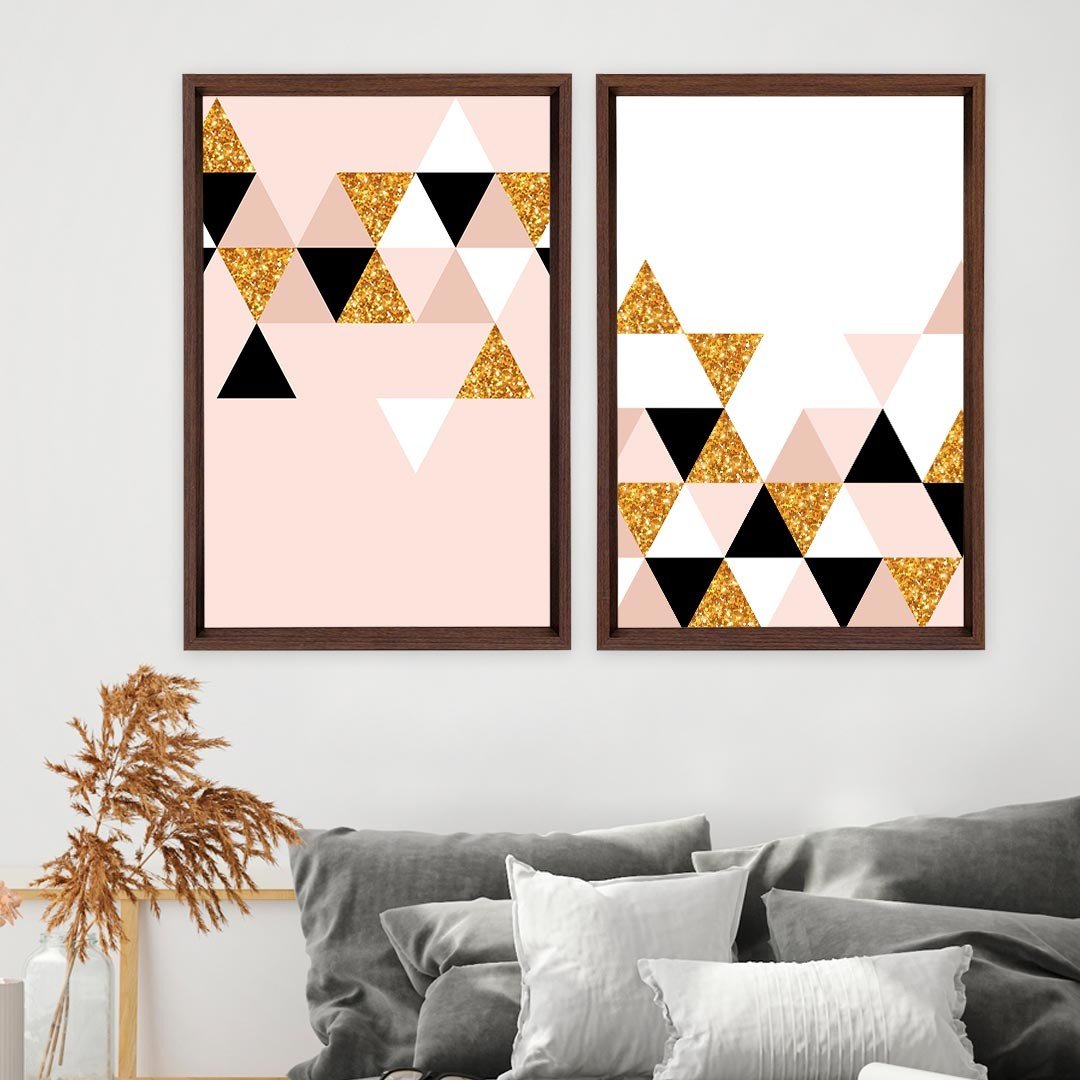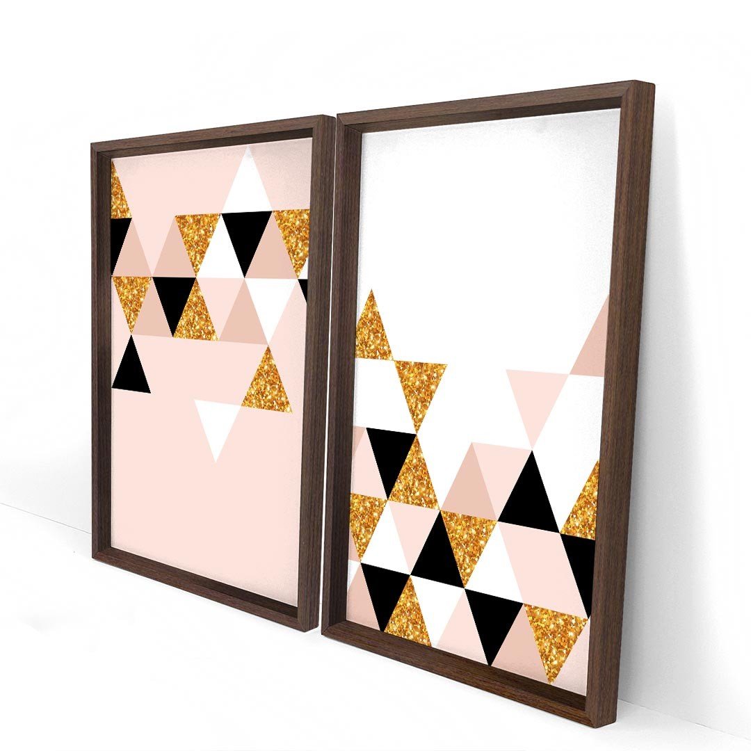 Quadro com Moldura Chanfrada Triângulos MADEIRA ESCURA - Grande - ...Características Gerais do Produto:.. Tamanho dos Quadros: - Tamanho Grande 90x122cm (60x90cm cada Quadro), - Tamanho Médio 60x82cm (40x60cm cada Quadro). Acabamento: Acabamento Selado, Moldura. Tecido: 100% Nylon. Estampa: Digital de Alta Qualidade, Aplicado por Termotransferência. Conteúdo da Embalagem: Conjunto 2 Quadros Decorativos. Gênero: unissex. Faixa etária: Acima de 13 anos...Garantia:.. Garantia contra defeito de fabricação