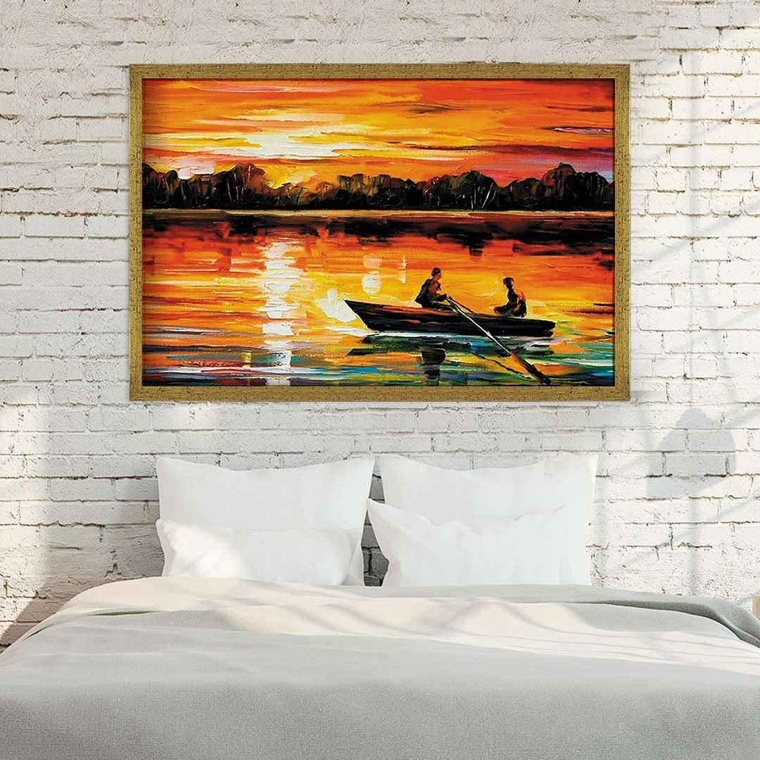 Quadro com Moldura Passeio de Canoa Dourado - Grande - ...Características Gerais do Produto:.. Tamanho dos Quadros: - Médio 40x60cm, - Grande 60x90cm. Acabamento: Acabamento Selado, Moldura. Tecido: 100% Nylon. Estampa: Digital de Alta Qualidade, Aplicado por Termotransferência. Conteúdo da Embalagem: - 1 Gravura com Moldura. Gênero: unissex. Faixa etária: Acima de 13 anos...Garantia:.. Garantia contra defeito de fabricação