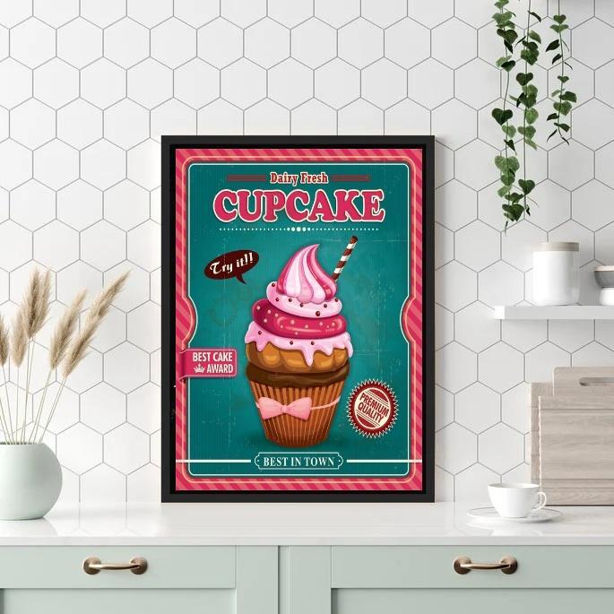 Quadro Cupcake - Rosa E Turquesa 45x34cm