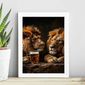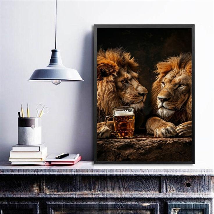 Quadro Leões Tomando Cerveja 24x18cm - Com Vidro