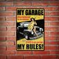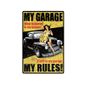 Seu espaço mais bonito e personalizado! As placas são a maneira mais fácil de renovar seu ambiente, são bonitas, coloridas e divertidas. O quadro "My Garage, My Rules" é ideal para deixar sua sala, quarto, escritório ou área de lazer mais alegre. O produto é ecologicamente correto, produzido com MDF de reflorestamento e adesivagem de alta qualidade. Decore, sem agredir a natureza. Dimensões do produto: Altura 29.5cm Largura 19.5cm Acompanha fita dupla face para fixação Utilize apenas em espaços cobertos Tradução: "Minha garagem, minhas regras! O que acontece na minha garagem, fica na minha garagem"