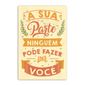 Renove o seu espaço! As placas decorativas são a maneira mais simples de renovar qualquer ambiente. O quadro "Sua parte" é colorido e cheio de positividade, vai deixar salar, quarto, área de lazer ou espaço comercial mais bonito e aconchegante. A placa é ecologicamente correta, produzida com MDF de reflorestamento e adesivagem de alta qualidade. Dimensões da placa: Altura: 29,5 cm Largura: 19,5 cm *Acompanha fita dupla face para fixação *Utilize em ambientes protegidos de chuva