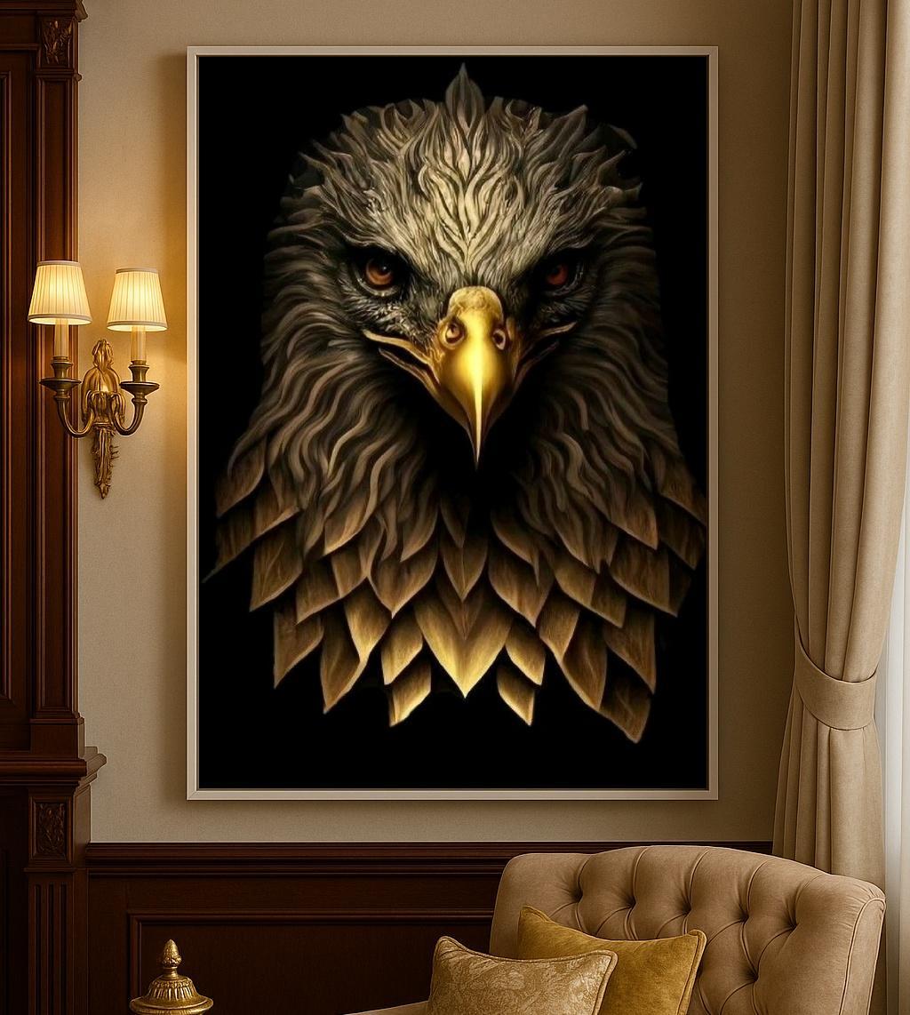 Quadro Sofisticado Canvas Águia Dourada-mold.branca