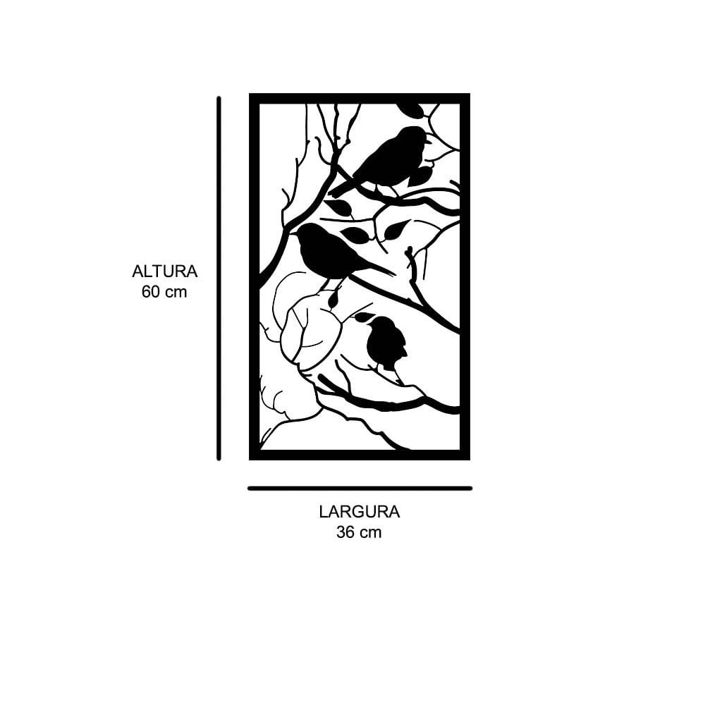 Quadro Individual Vazado Em Mdf Pássaros No Galho Branco - 36cm X 60cm -
