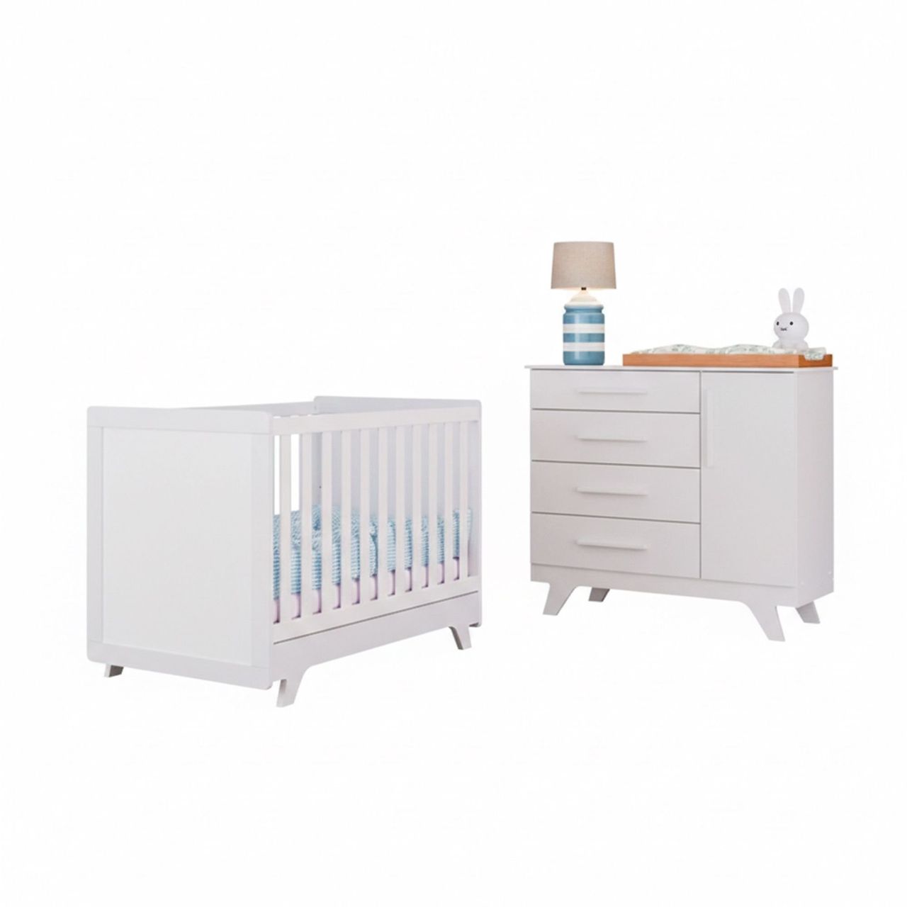 Quarto De Bebê Com Cômoda E Berço Mini Cama 100% Mdf Retrô Jolie Branco Brilho.