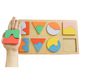 conteúdo: 16 Peças Geométricas Coloridas, Prancha De Madeira Para Encaixar As Metades.