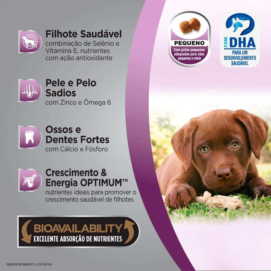 Ração Optimum Cães Filhotes Frango E Arroz contém Possui Formulação Exclusiva, Com Proteínas, Cálcio, Ferro, Dha (ômega 3) E Outros Nutrientes Essenciais Com Ação Antioxidante, Que Ajudam A Manter Seu Filhote Saudável E Ativo Na Etapa De Transição Para A Vida Adulta. Combinação De Antioxidantes Naturais, Como Taurina E Vitamina E, Que Ajudam A Manter O Seu Filhote Saudável, Contem Zinco E Ômega 6, Nutrientes Que Contribuem Para A Saúde Da Pele E Dos Pelos De Seu Cão.calcio, Ferro E Dha (ômega 3) Para Apoiar O Desenvolvimento De Cães Mais Jovens E Ativos. Calcio E Fósforo Em Níveis Ideais, Nutrientes Essenciais No Desenvolvimento De Ossos E Dentes Fortes.é Um Produto Feito Com Matérias-primas De Altíssima Qualidade: Frango, Fibras Naturais E Sem Adição De Conservantes, Corantes Ou Aromas Artificiais.