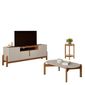 Rack 1,70 Com Mesa De Centro E Mesa Lateral Lizz Off White/cedro.