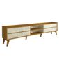 Fabricado 100% em MDF, conta com acabamento refinado e pés de madeira que elevam o design, além de garantirem firmeza e resistência. Seu amplo tampo suporta a TV com segurança, enquanto as portas e nichos bem distribuídos oferecem espaço para eletrônicos, livros, adornos e objetos de uso cotidiano.
