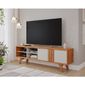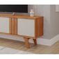 A Porta De Correr Com O Trilho Inferir Em Alumínio, E Os Pés De Madeira Proporcionam Um Estilo Moderno E Retrô, Dando Sofisticação E Elegância No Seu Rack Bancada Para Tv Até 60 Polegadas.