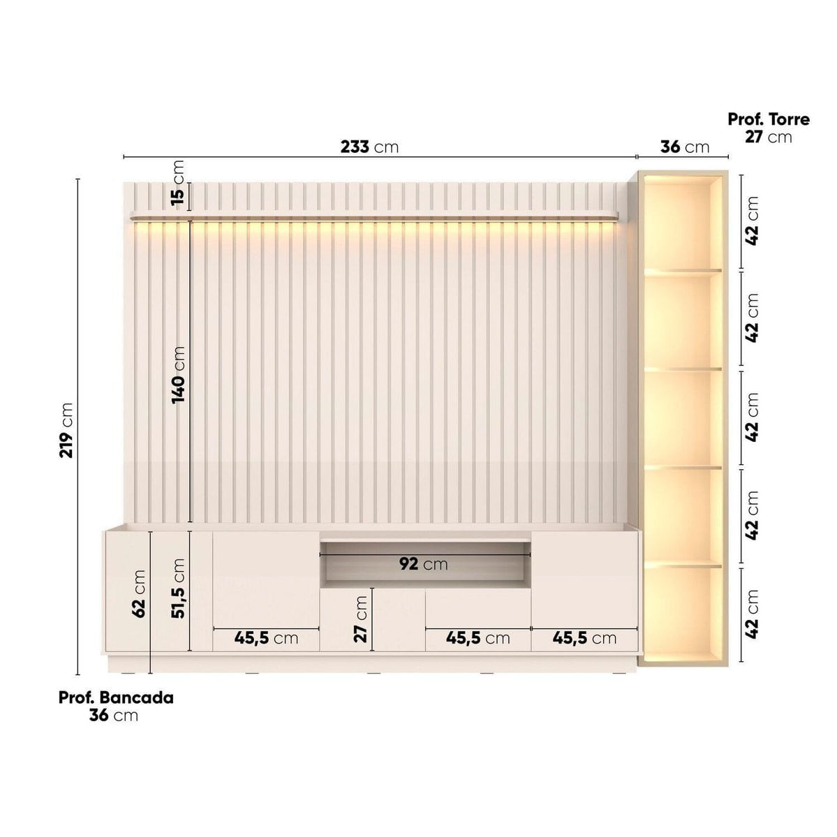 A Estante Vitória Régia Ripada é a união perfeita entre design sofisticado , funcionalidade e acabamento premium , ideal para quem deseja transformar a sala de estar em um ambiente moderno e elegante.