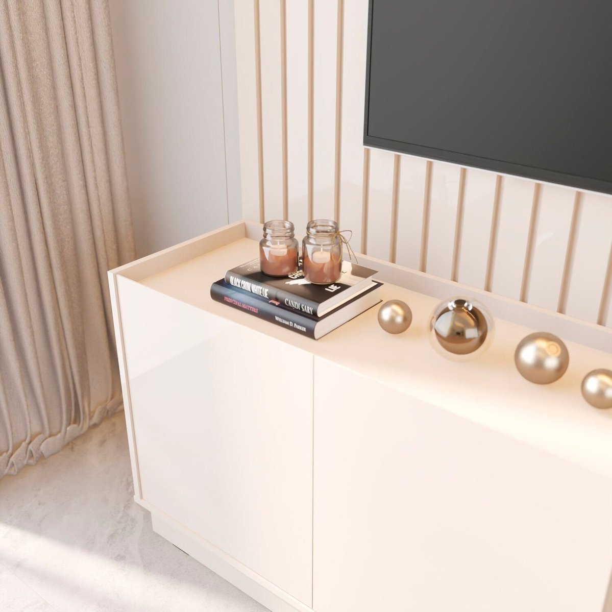 Rack com Painel para TV 84 Polegadas 100% MDF com LED Vitória Régia Off White