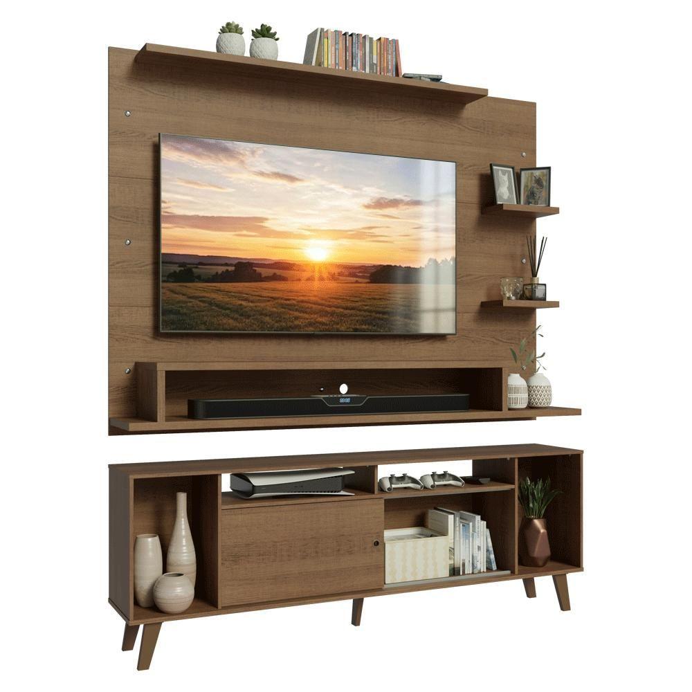 Rack Com Painel Para Tv Até 60 Polegadas 180 Cm Com Pés Rustic Cancun Madesa
