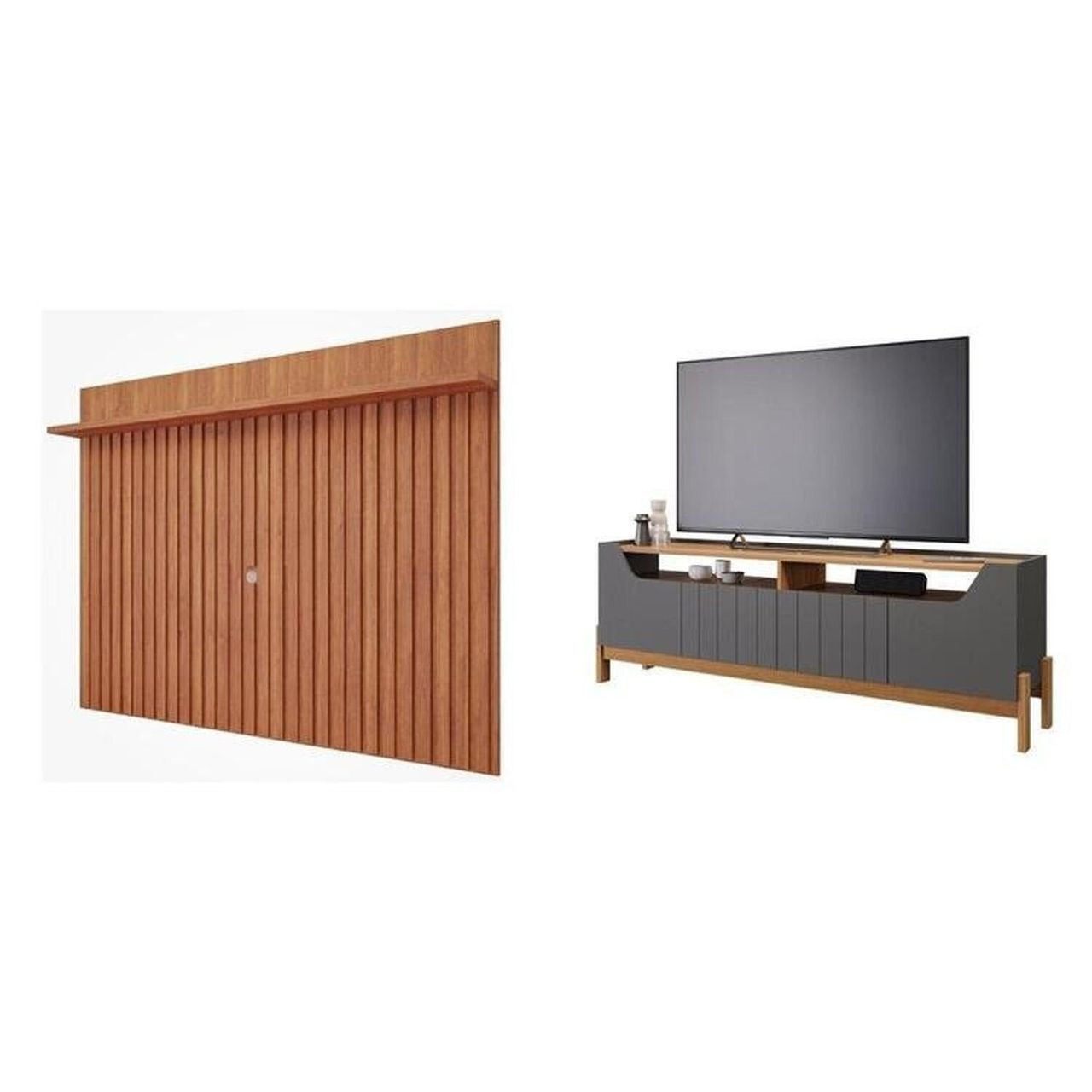 Rack Com Painel Ripado Para Tv Até 60 Polegadas 100% Mdf Moema Espresso Móveis Nature/grafite.