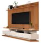 Rack Com Painel Ripado Para Tv Até 72 Polegadas 192cmx180cm 3 Gavetas E Pés Com Rodízios Vivare Classic Off White/ Nature.
