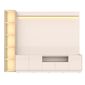 A iluminação embutida valoriza o painel e cria uma atmosfera acolhedora, destacando a TV e os objetos decorativos.