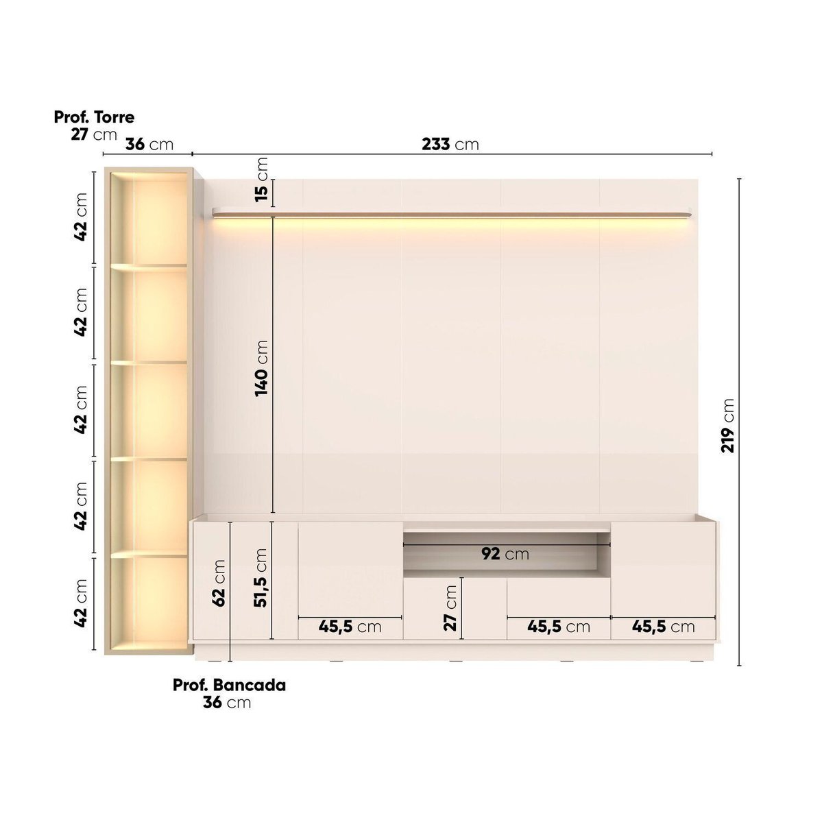 A Estante Vitória Régia é a união perfeita entre design sofisticado, funcionalidade e acabamento premium, ideal para quem deseja transformar a sala de estar em um ambiente moderno e elegante.