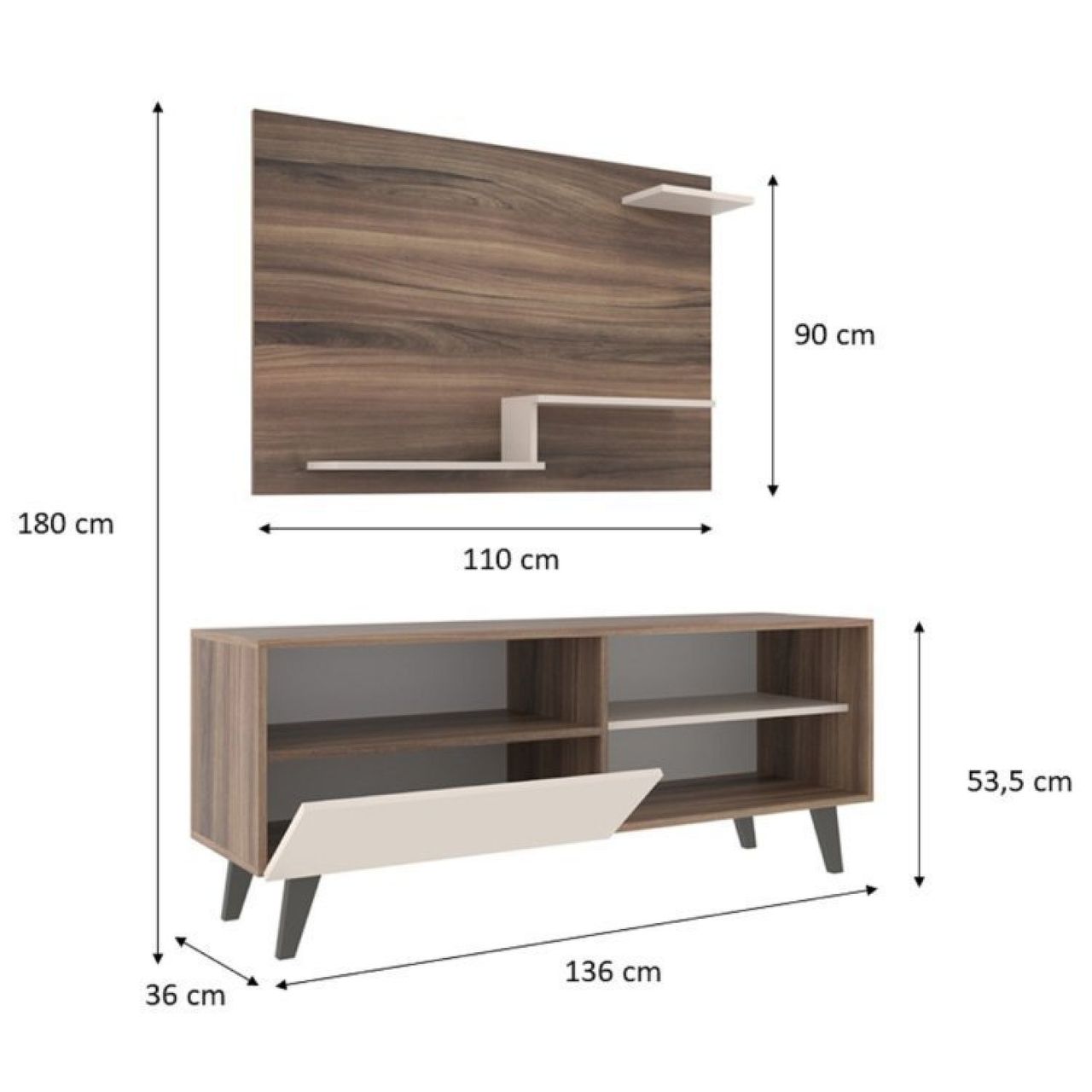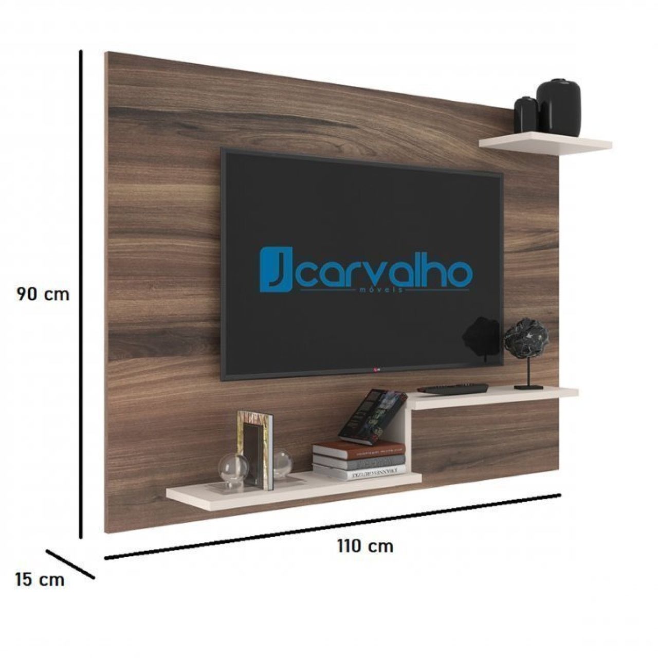 Painel Denver Suporta Uma Tv Até 42" Na Cor Nogueira Com As Prateleira Na Cor Off White, Tem A Sua Altura 90 Cm, Comprimento De 110 Centímetros E 15 Cm De Profundidade Com Prateleira De 15 Mm. Painel Compacto Perfeito Para Ambientes Pequenos.