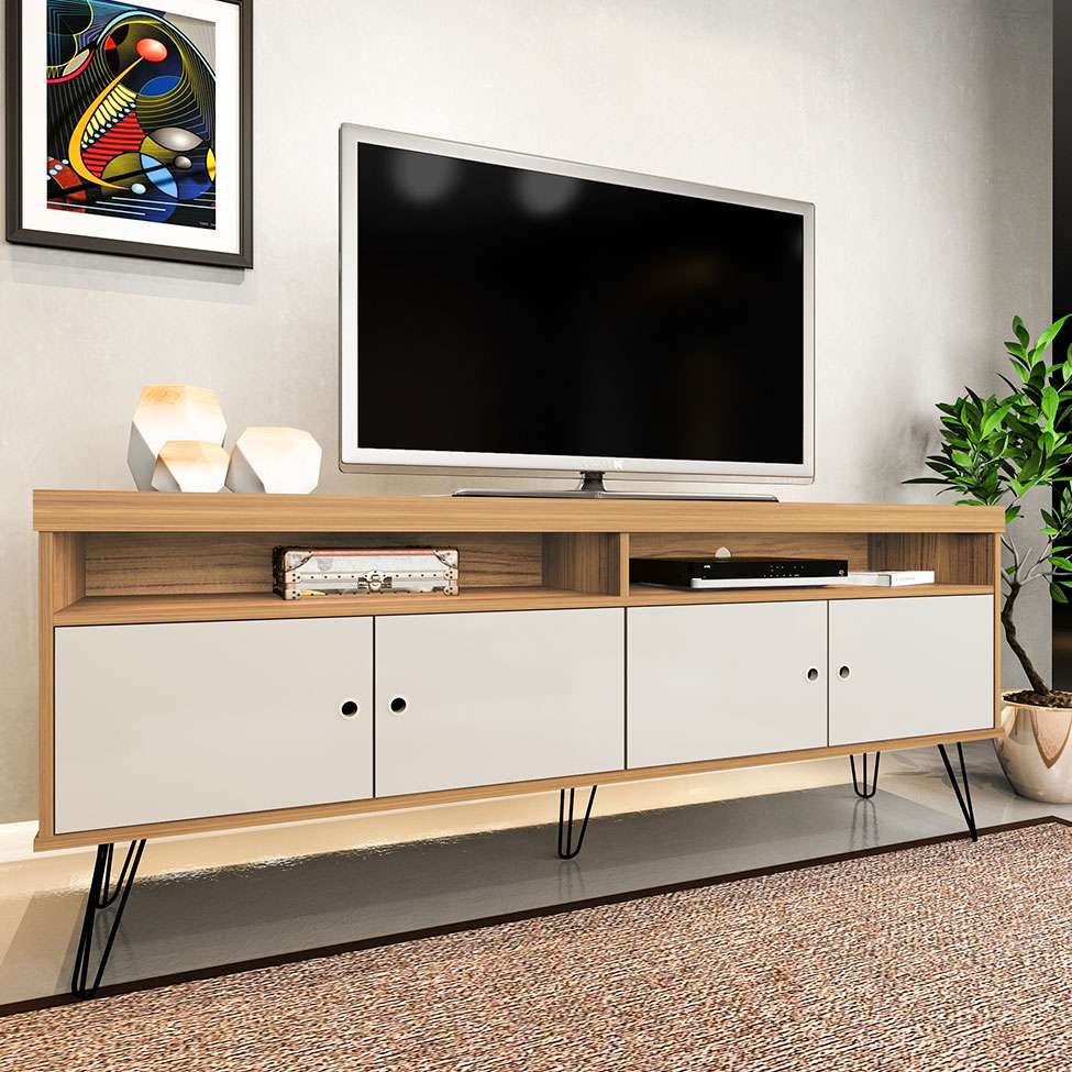 Que tal o Rack Liberty?Com estrutura completa para deixar sua sala de estar bem organizada e, claro, com um visual charmoso, o Rack Liberty é a melhor escolha para quem quer criar um lar-style incrível. Além dos compartimentos internos, você também tem disponível o tampo amplo, e, juntos, eles vão acomodar os eletrônicos e aqueles outros objetos essenciais à rotina, sejam decorativos ou não. Enquanto isso, o visual vai potencializar o bom gosto desse cômodo, além de facilitar muito na hora de combiná-lo com o sofá, mesinha lateral e demais itens que você gosta de usar para deixar o centro de entretenimento mais aconchegante e com seu toque pessoal. Daí é só chamar a família toda para curtir um filme ou para um bate-papo descontraído ,)