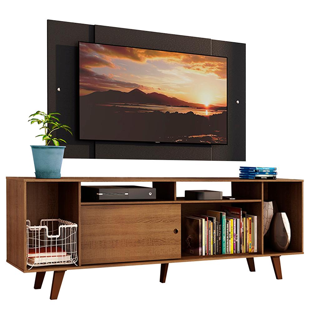 Renove sua sala com o que há de mais moderno em design. Conheça o conjunto do Rack Cancun com Pés e Painel 2185 da Madesa.O rack possui um tamanho ótimo, com uma porta de correr que permite fechar o lado esquerdo ou direito da abertura central. Além disso, são vários nichos de tamanhos variados. Assim, cabe tudo de maneira organizada, dos aparelhos eletrônicos até objetos decorativos, livros e revistas. Para completar, os pés dão mais firmeza e aumentam a altura do móvel.O painel tem design que mistura padrões verticais e horizontais. Comporta TV de até 58 polegadas e possui uma abertura central que facilita na passagem dos fios. Por ser separado do rack, pode ser fixado na altura desejada, conforme sua preferência ou necessidade.O acabamento do rack é no padrão amadeirado Rustic e o do painel é preto. O processo é feito em Poliéster Protetor com 7 camadas, detalhe que confere mais durabilidade e qualidade aos produtos. Além disso, é ecológico, isento de vapores prejudiciais à atmosfera.Imagens meramente ilustrativas.Itens inclusos:- Um (1) Rack de 64 cm de altura x 180 cm de largura x 32 cm de profundidade com pés em PVC- Um (1) Painel de 80 cm de altura x 136 cm de larguraCódigo do produto: MDES0200215ZD8Obs: A Madesa não disponibiliza serviço de montagem. O produto segue com manual de instalação e todas as ferragens necessárias para sua montagem.