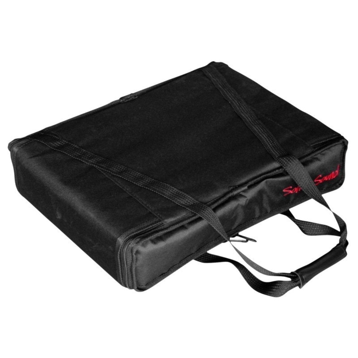 Rack com abertura frontal e traseira. Fabricado em madeira revestida com espuma e nylon. .Perfil de alumínio com furação padrão Somente na Frente. .Acabamento externo em nylon 600. Acompanham parafusos e chave...Medidas Internas:.Largura frente: 48cm.Profundidade 33,5 cm.Altura 9cm..Características:.Capa externa em nylon 600gr.Estruturado em chapa compensada.Perfil em alumínio