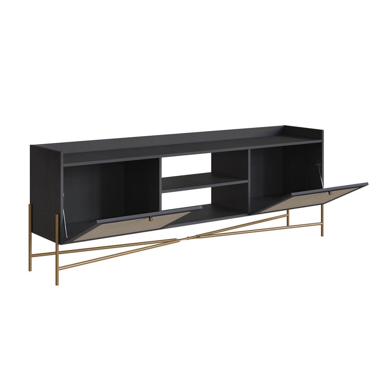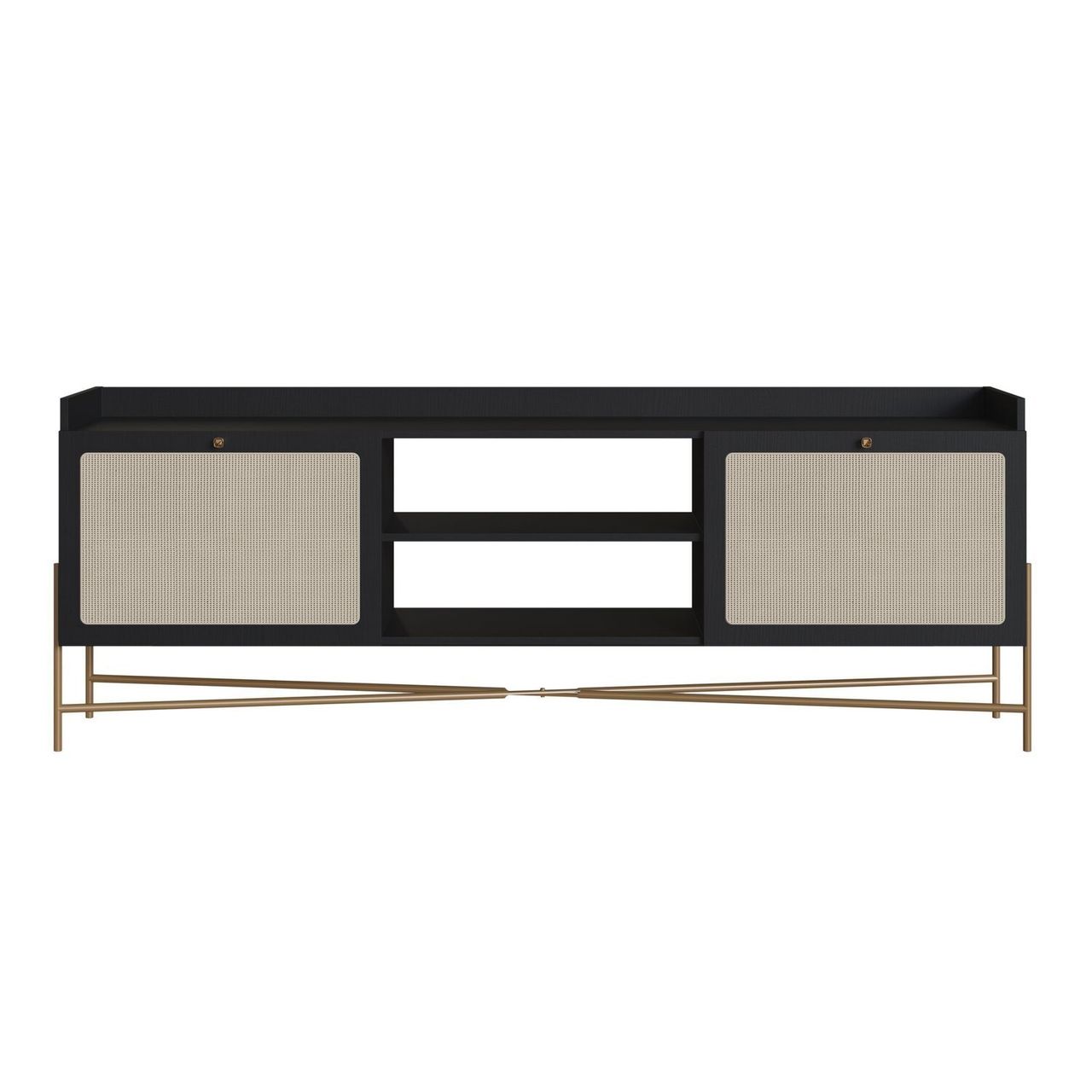 Rack Para Tv 65 Polegadas 2 Portas 183cm Palhinha Pé Metal Oslo Nero/dourado.