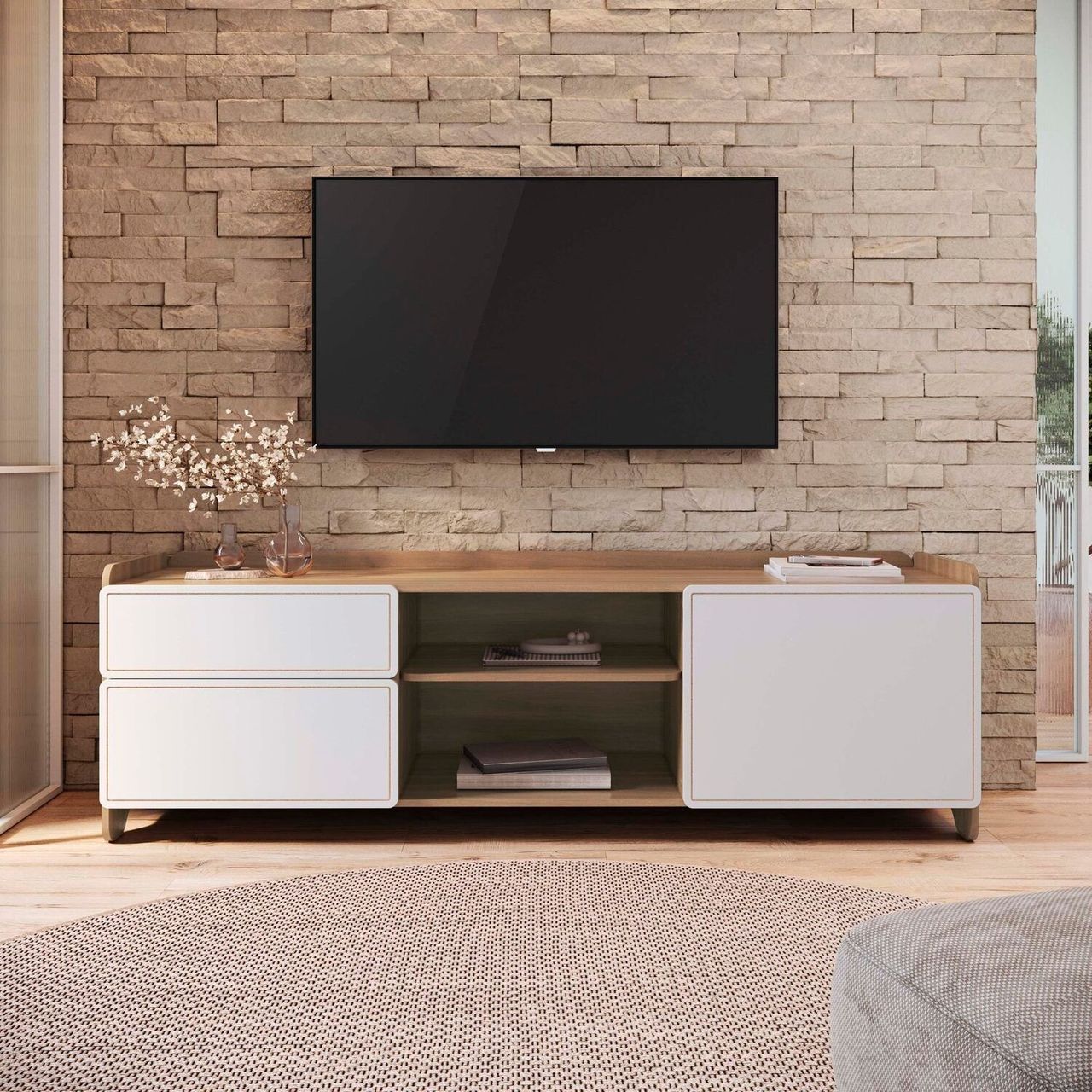 Rack Para Tv 75 Polegadas 100% Mdf 58x182cm Flea Louro Freijó Grann/branco.