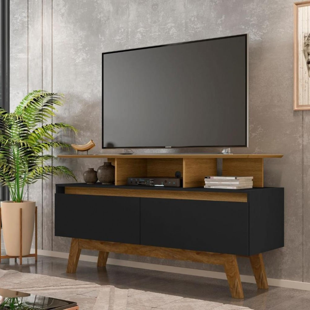 O Rack Rubi 1.2 É A Uma Escolha Inteligente Para Sua Sala. Com Designer Retrô Que Irá Encantar Você, Ele Possui Tampo De Mdf Chanfrado Em Ângulo Proporcionando Ainda Mais Charme E Requinte Ao Móvel. Seus Pés São Feitos De Madeira Maciça Garantindo Ainda Mais Qualidade E Resistência Ao Produto. Possui Duas Portas Basculantes Com Dobradiças Metálicas E Amplo Espaço Interno. Ideal Para Tvs De Até 50 Polegadas E Nichos Ideais Para Acomodar Aparelhos Eletrônicos, Objetos De Decoração, Entre Outros. Com Tantas Qualidades O Rack Rubi 1.2 É Perfeito Para Sua Sala.