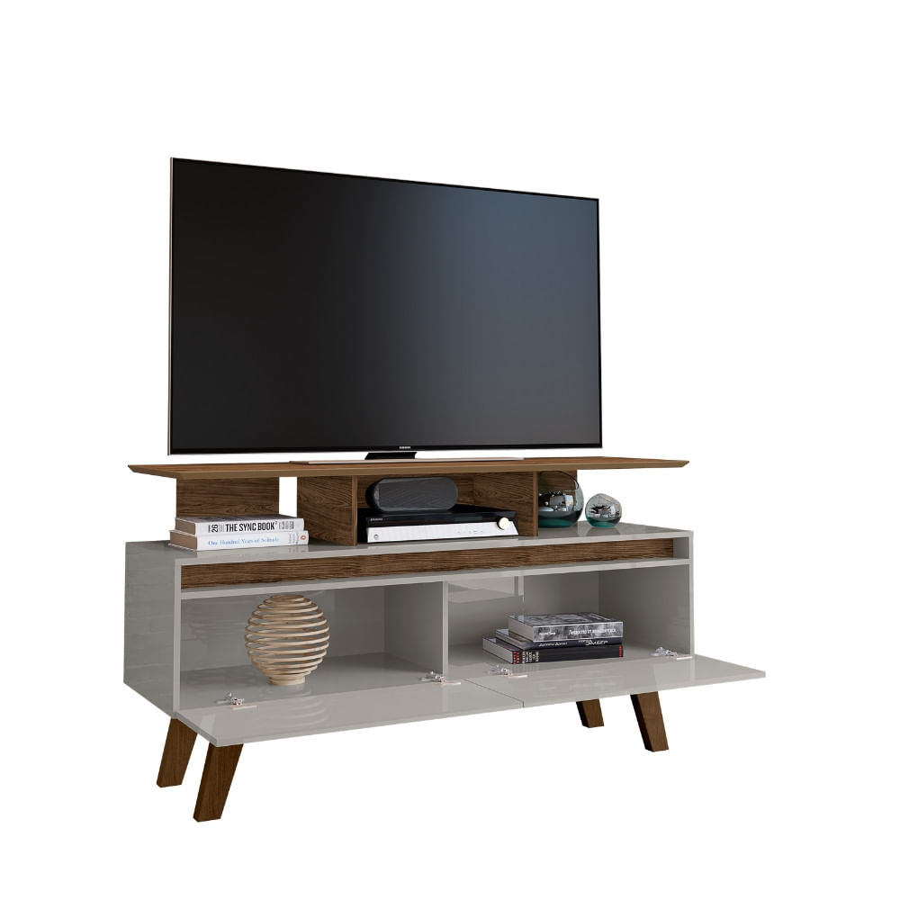O Rack Rubi 1.2 É A Uma Escolha Inteligente Para Sua Sala. Com Designer Retrô Que Irá Encantar Você, Ele Possui Tampo De Mdf Chanfrado Em Ângulo Proporcionando Ainda Mais Charme E Requinte Ao Móvel. Seus Pés São Feitos De Madeira Maciça Garantindo Ainda Mais Qualidade E Resistência Ao Produto. Possui Duas Portas Basculantes Com Dobradiças Metálicas E Amplo Espaço Interno. Ideal Para Tvs De Até 50 Polegadas E Nichos Ideais Para Acomodar Aparelhos Eletrônicos, Objetos De Decoração, Entre Outros. Com Tantas Qualidades O Rack Rubi 1.2 É Perfeito Para Sua Sala.