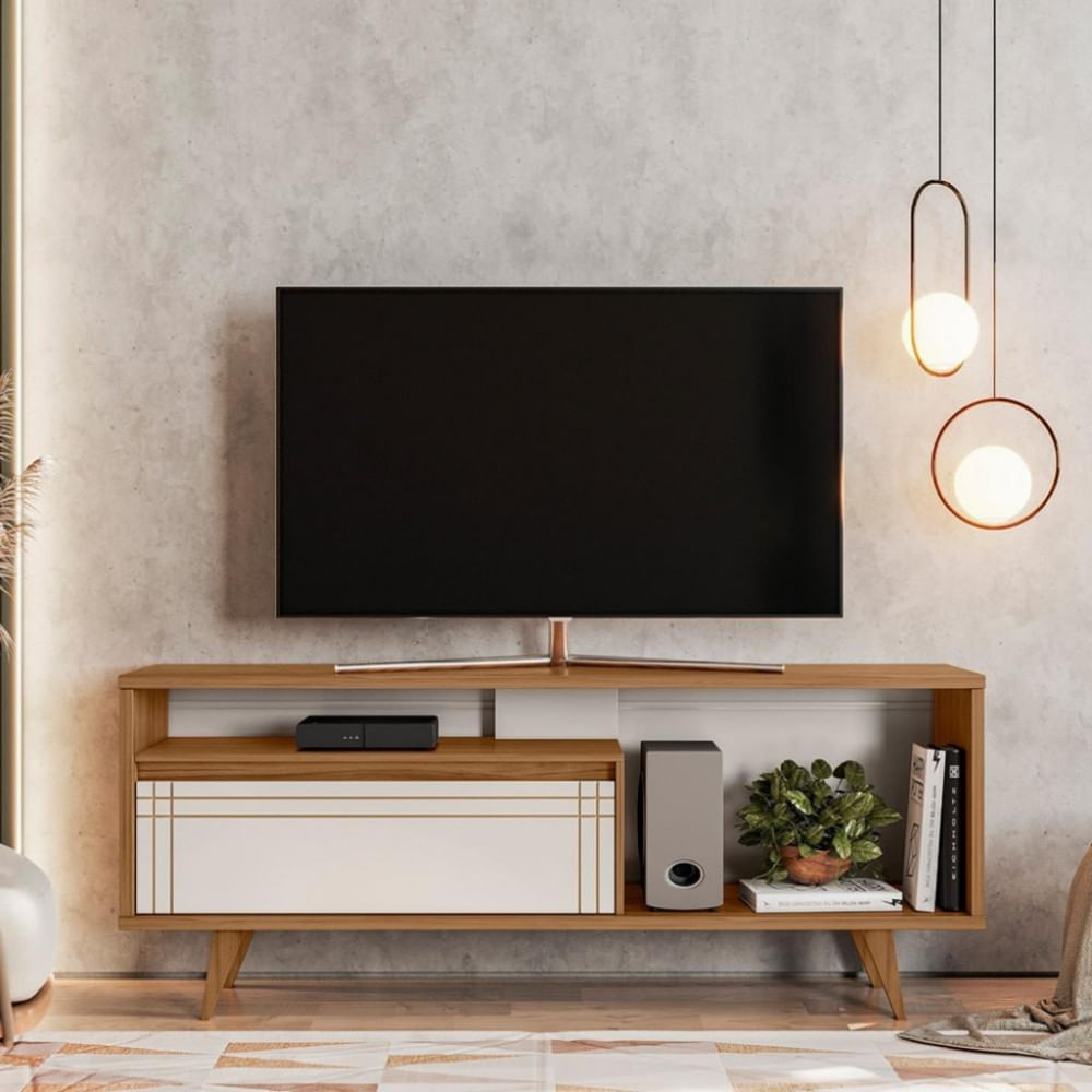 O Rack Para Tv Até 60 Polegadas 1 Porta Com Pés Nt 1315 Notável Móveis, Foi Projetado Para Adicionar Personalidade À Sua Sala De Estar, Este Móvel Combina Pés Elegantes De Madeira Com Uma Porta Em Mdf Detalhadamente Frisada. Renove Seu Espaço Com Estilo, Pois Esta Bancada Acomoda Televisores De Até 60 E Apresenta Uma Robusta Estrutura De 15 E 25mm, Garantindo Resistência E Durabilidade Excepcionais, Transformando Sua Sala Com O Charme Único.
