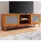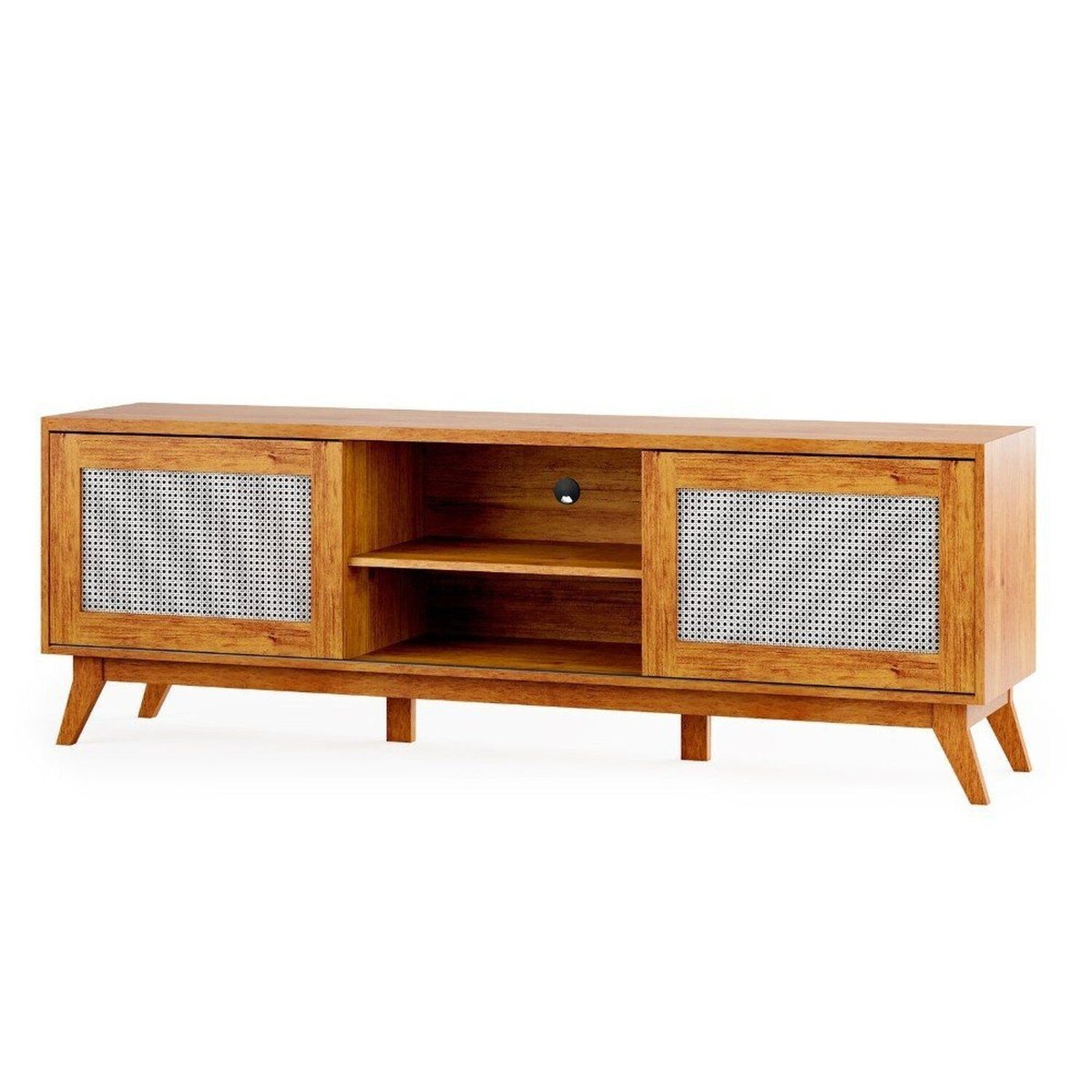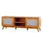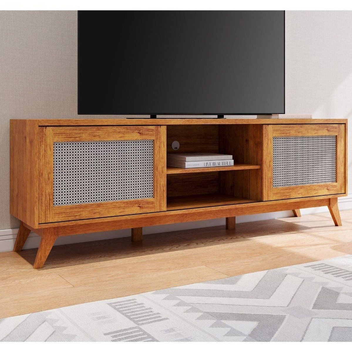 Rack para Tv de até 75 Polegadas, com design moderno e funcional. Possui 2 portas de correr com detalhes em palha natural, trazendo charme ao ambiente. A prateleira oferece espaço prático para aparelhos eletrônicos. Ideal para organizar objetos e itens decorativos. Perfeito para compor a sala com elegância e praticidade.