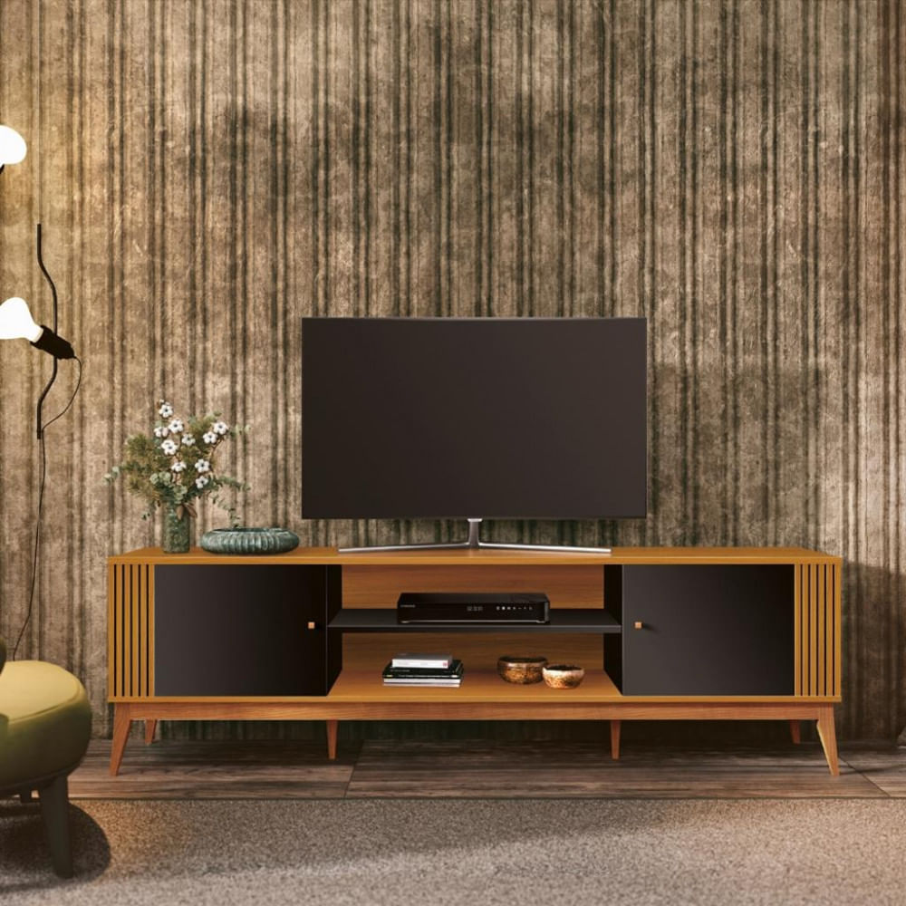 O Rack Para Sala De Estar Para Tv Até 60 Polegadas, Possui Um Design Contemporâneo Com Estrutura Em Mdp. Possui 2 Portas Com Dobradiças Metálicas E Puxadores Em Abs Alem Dos Nichos. Acomoda Tv, Receptores, Objetos Decorativos E Outros. Oferece Organização E Requinte Ao Ambiente.
