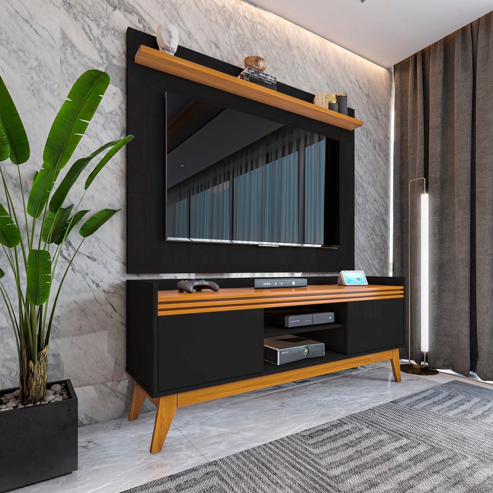 Painel Astúrias para TV de até 50 polegadas, 1 prateleira superior de 25mm, furação passa fio e pintura UV.