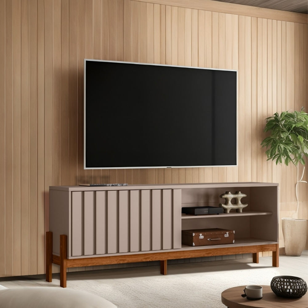 O Rack Ripado Para Tv Até 75 Polegadas 1 Porta De Correr Com Pés New Aurora Mobler