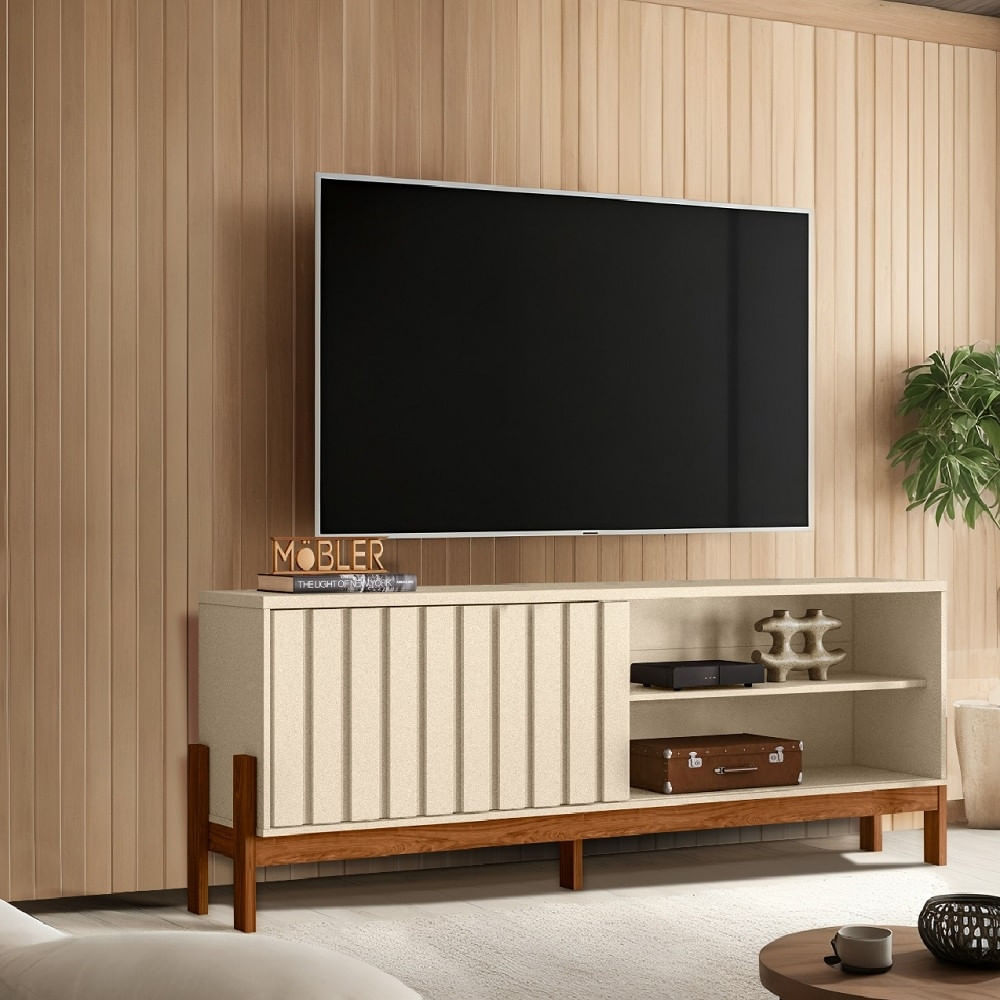 O Rack Ripado Para Tv Até 75 Polegadas 1 Porta De Correr Com Pés New Aurora Mobler
