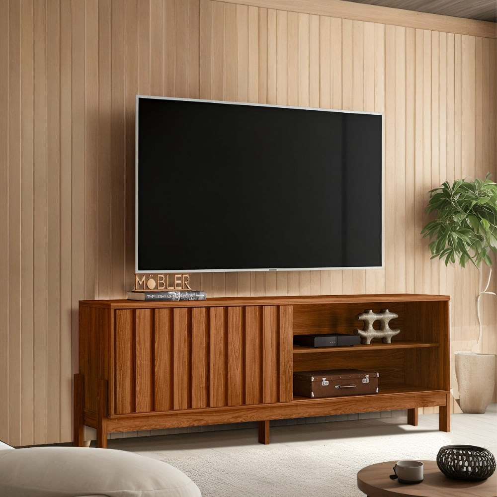 O Rack Ripado Para Tv Até 75 Polegadas 1 Porta De Correr Com Pés New Aurora Mobler