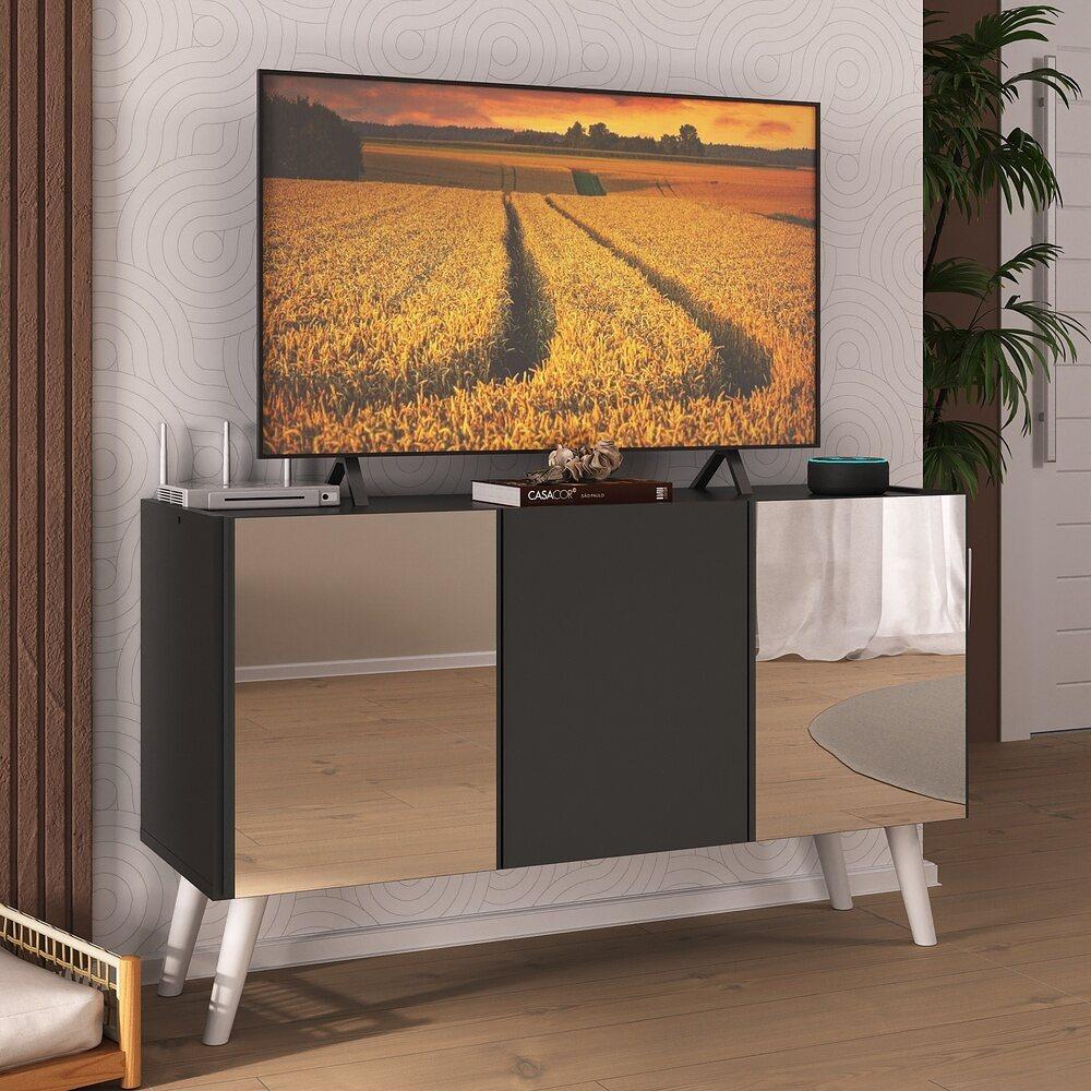 O Rack Tv Até 32 Polegadas 3 Portas Retrô Com Espelhos Multimóveis Mp1078 É O Móvel Perfeito Para Completar A Decoração Da Sua Sala De Estar Com Estilo. Fabricado Em Mdp (15mm) Com Acabamento Acetinado (cerca De 20% De Brilho), Garante Durabilidade E Resistência. Com 3 Portas, Você Terá Amplo Espaço Interno Para Guardar Objetos E Manter Sua Sala Sempre Organizada. Suporta Tv De Até 32 Polegadas (até 10kg). Seu Design Clean Proporciona Um Visual Moderno E Sofisticado Ao Ambiente. O Charme Final Fica Por Conta Dos Pés Retrô Em Polipropileno, Que Dão Um Toque Vintage Ao Móvel. Os Espelhos São De Vidro, Evitando Que A Imagem Fique Distorcida, E Lapidados (passam Por Um Processo Para Que As Bordas Não Fiquem Cortantes), Garantindo Maior Segurança E Deixando O Móvel Mais Requintado.conteúdo Da Embalagem:1 (um) Rack Com Espelhosmanual De Montagemkit Ferragemdimensões Do Produto Montado:altura: 56 Cm | Largura: 93 Cm | Profundidade: 31,5 Cm*você Pode Consultar As Medidas Detalhadas Na Imagem Técnica Do Produto.*devido Às Variações De Tamanho Dos Televisores No Mercado, Sugerimos Que Compare O Tamanho Da Sua Tv Com O Rack Antes De Efetuar A Compra.*obrigatório Fixar Na Parede.*as Cores Do Produto Podem Sofrer Variações De Tonalidade De Acordo Com As Configurações Do Seu Dispositivo.imagem Meramente Ilustrativa. Decoração E Eletros Não Acompanham O Produto.o Produto Será Entregue Desmontado E Não Disponibilizamos O Serviço De Montagem.