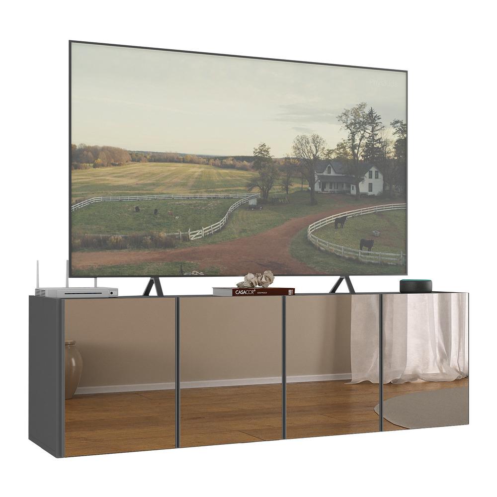 Rack Tv Até 50 Polegadas 4 Portas Suspenso Com Espelhos Multimóveis Mp1081 Grafite