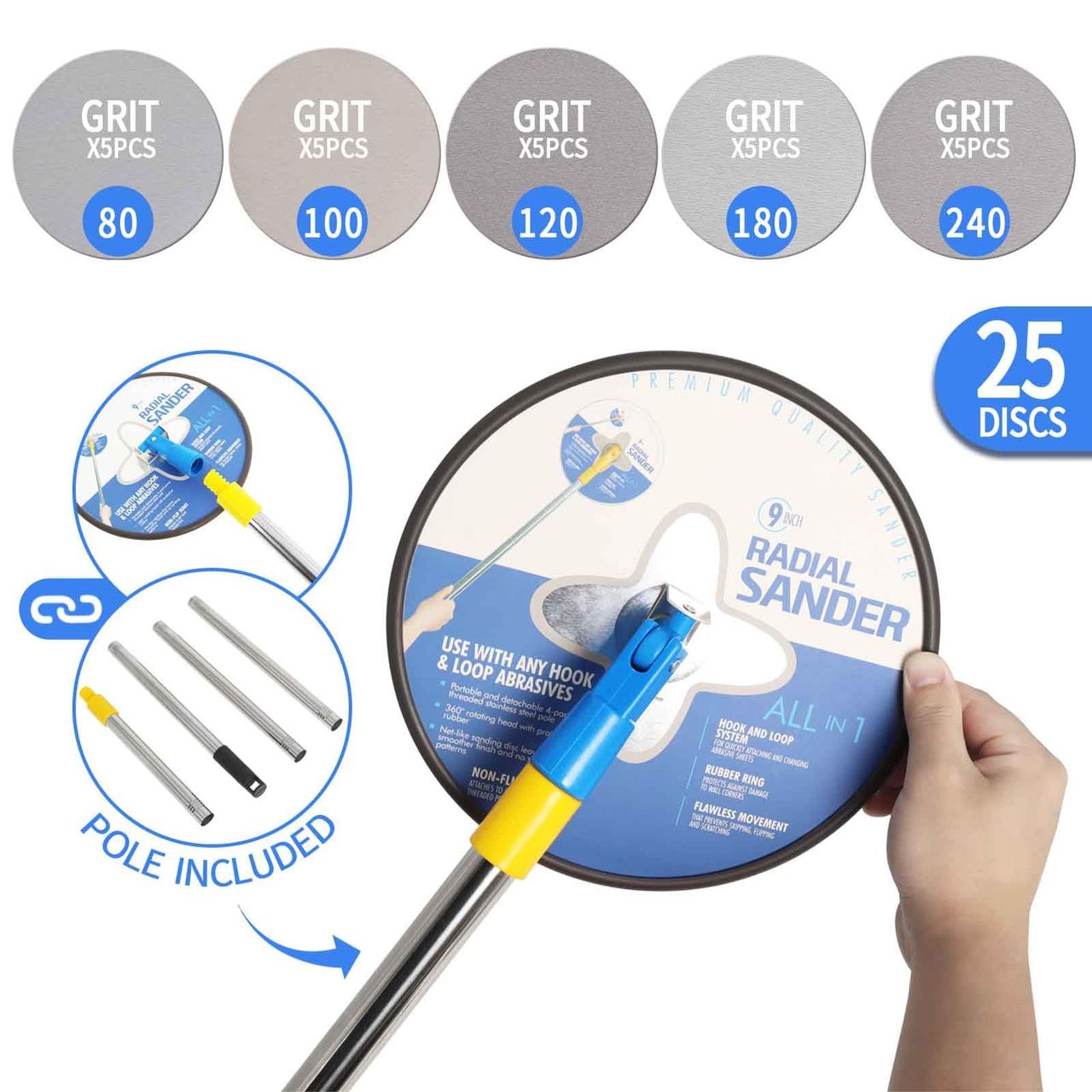- O Que Você Receberá: Inclua Uma Lixadeira De Tinta Radial Com Haste De Extensão, 25 Discos De Lixamento Com 5 Grãos Diferentes (5 De Cada Grão (80,100, 120, 180, 240), Para Atender Às Necessidades De Moagem De Diferentes Cenas. Quanto Menor O Número, Mais Grosso É O Grão. ) E Uma Haste De Extensão Ajustável.