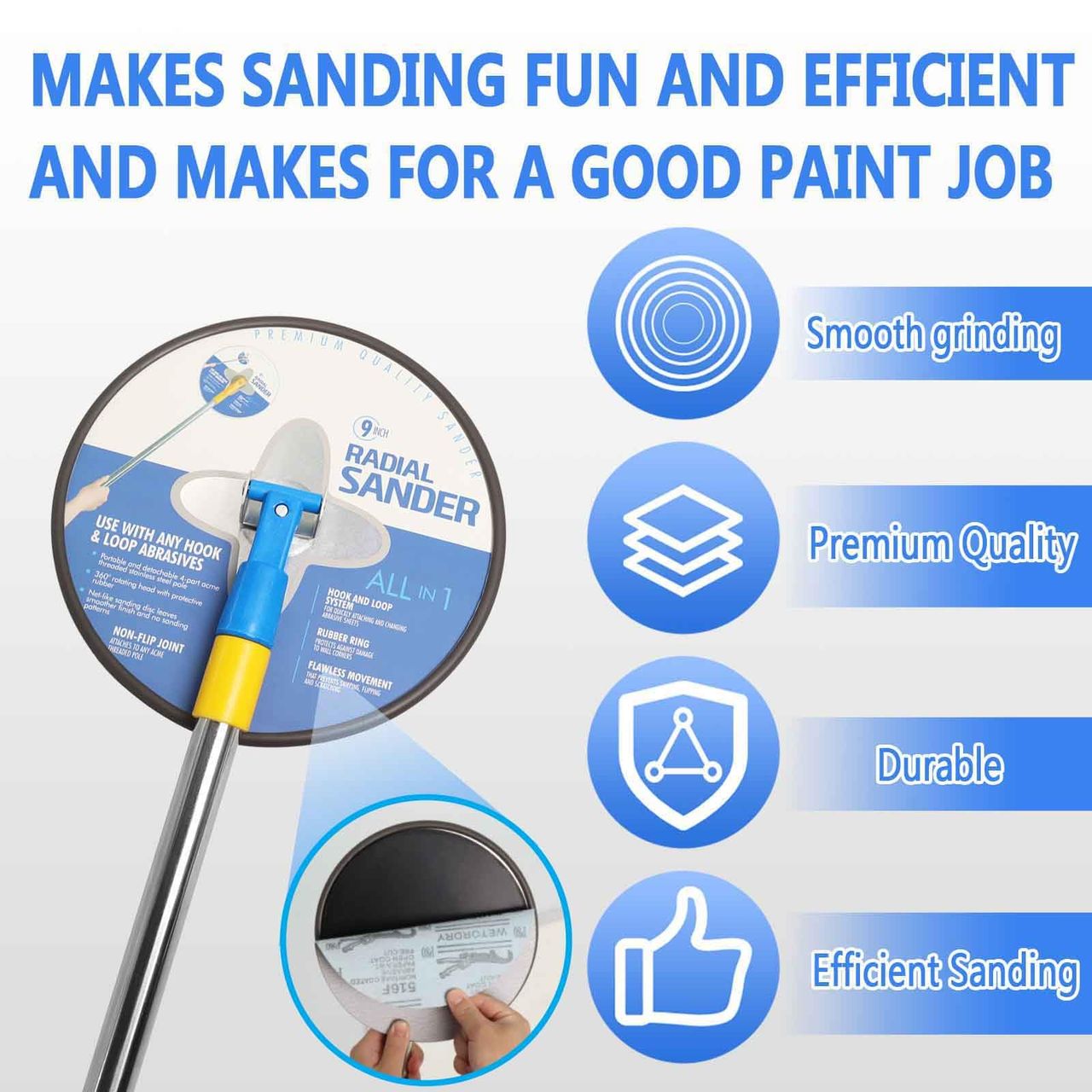 - Compatibilidade Universal: A Lixadeira Radial De Drywall Funciona Perfeitamente Com Todas As Lixas De Gancho De 23 Cm. Estes Discos De Lixamento Radiais São Projetados Para Caber Na Maioria Das Lixadeiras Radiais De 23 Cm, Tornando-as Ideais Para Obter Um Acabamento Polido E Sem Arranhões No Composto De Drywall.