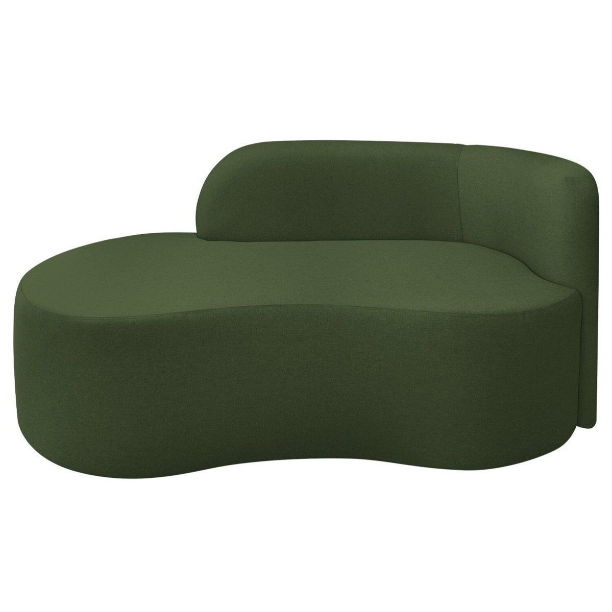 Recamier Curvo Orgânico 160cm 2 Lugares Lado Esquerdo Para Sala Ou Quarto Linho Japão Verde.