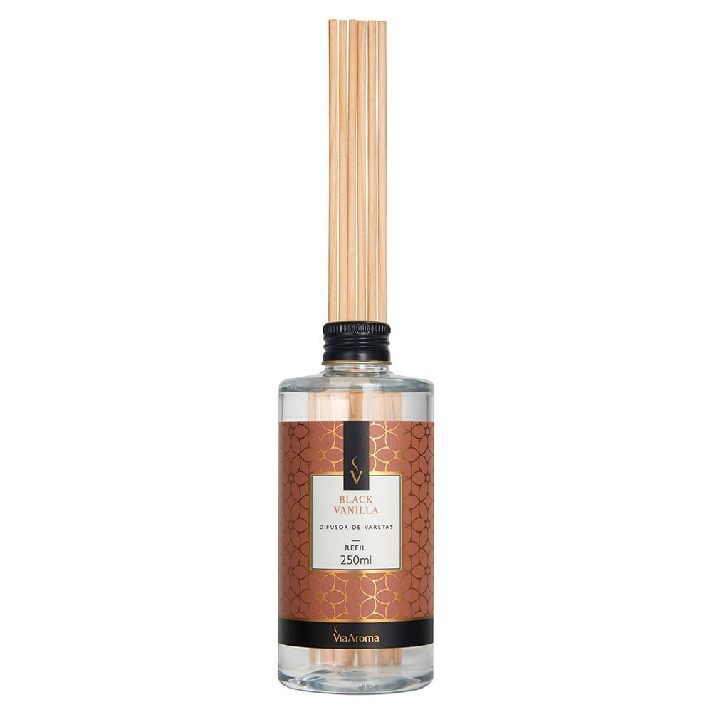 REFIL PARA DIFUSOR DE VARETAS 250ml - BLACK VANILLA Um aroma rico em glamour e sofisticação, a fragrância Black Vanilla Via Aroma é composta por notas olfativas que remetem ao luxo e poder. O toque fresco e sofisticado se dá pelo encontro das notas frescas e cítricas com os acordes florais e adocicados, esta combinação traz o charme e o glamour para o ambiente. Os refis Via Aroma foram desenvolvidos para repor a sua fragrância favorita com facilidade e para nunca te deixar sem o seu produto preferido.