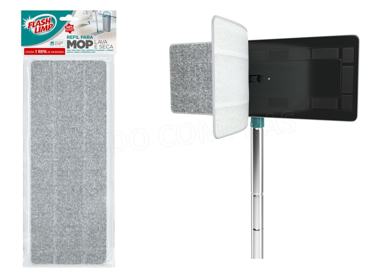 Refil Lava E Seca Flash Limp o Refil Para Mop Lava E Seca É Resistente, Lavável E 100% Microfibra. características: referência: Rmop7740, conteúdo: 01 Refil De Microfibra, medidas: 12,5 X 32 X 1cm, peso: 28g.