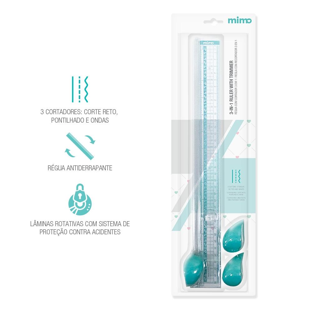 Régua Com Cortador 3 Em 1 Mimoa Régua Com Cortador 3 Em 1 Mimo Possui Três Diferentes Cortadores Rotativos Que Fazem Cortes Retos, Pontilhados E Em Ondas. Além Disso, Ela É Antiderrapante E Tem 35 Cm Com Escala De Medição Em Centímetros E Em Polegadas, Horizontais E Verticais. Tudo Isso Gera Maior Precisão Do Corte.ela É Recomendada Para Cortar Uma Folha Por Vez De Diversos Papéis Com Gramatura De Até 300 G/m², Tais Como Papel Fotográfico, Papel Cartão, Sulfite. Também É Possível Cortar Vinil Adesivo. As Lâminas Rotativas Dessa Régua Vêm Com Um Sistema De Molas Que Mantém A Lâmina Automaticamente Dentro Do Cortador Quando Não Está Em Uso, Evitando Possíveis Acidentes Com O Produto.essa Régua Com Trimmer Mimo Ajuda Na Produção De Vários Tipos De Artesanato, Como De Scrapfesta, Scrapbook, Papercraft Low Poly, Encadernação, Convites, Home Decor, Cartões De Visitas, Papelaria Empresarial, Tags E Muito Mais.refil De Cortadores Para Régua 3 Em 1 Mimocaso Você Já Tenha A Régua Com Cortador 3 Em 1 Mimo, Mas Precise Trocar Ou Repor Um Dos Cortadores, Basta Comprar Os Refis Vendidos Separadamente.informações Técnicas:produto:régua Com Cortador 3 Em 1 Mimo - 35 Cmcor:transparente E Azul Águaquantidade: 4 Peçastipo De Cortadores: Rotativopadrões De Corte Dos Cortadores: Reto, Pontilhado E Ondastipos De Papéis Recomendados:uma Folha Por Vez De Papéis Com Gramatura De Até300 G/m², Como Papel Fotográfico, Papel Cartão E Sulfitetamanho: 35 Cmescala De Medição: Em Centímetros E Em Polegadas, Horizontais E Verticaismarca: Mimo Craftscódigo De Fábrica (sku): 05969