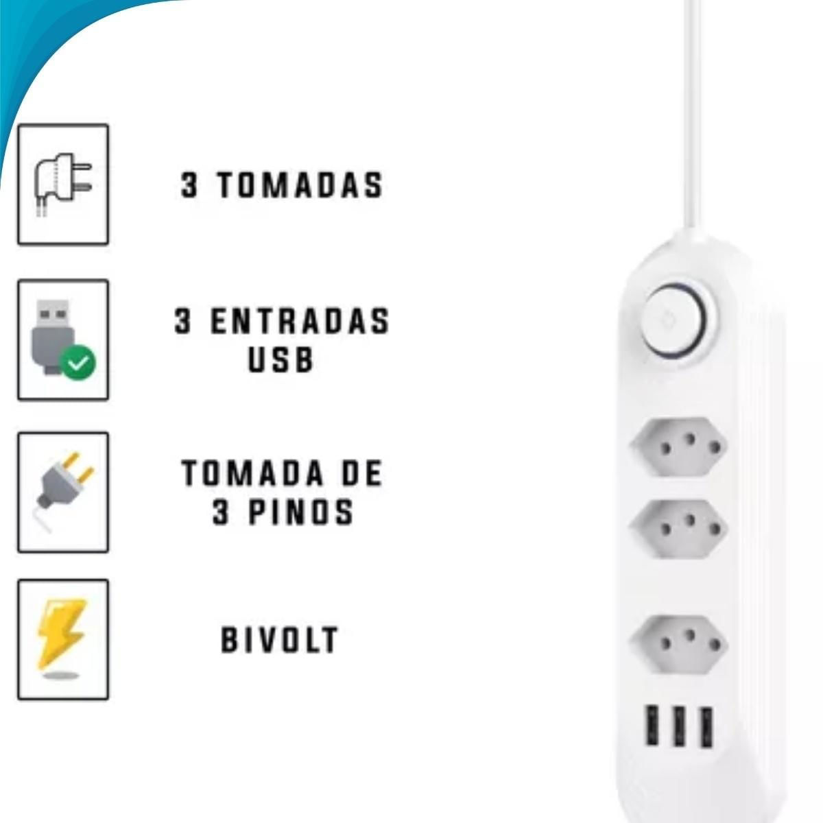 1 Filtro De Linha Com 3 Tomadas E 3 Entradas Usb