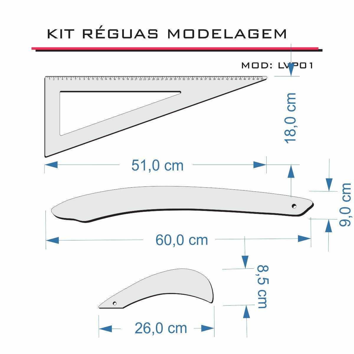 01 Conjunto Com 3 Réguas De Costura