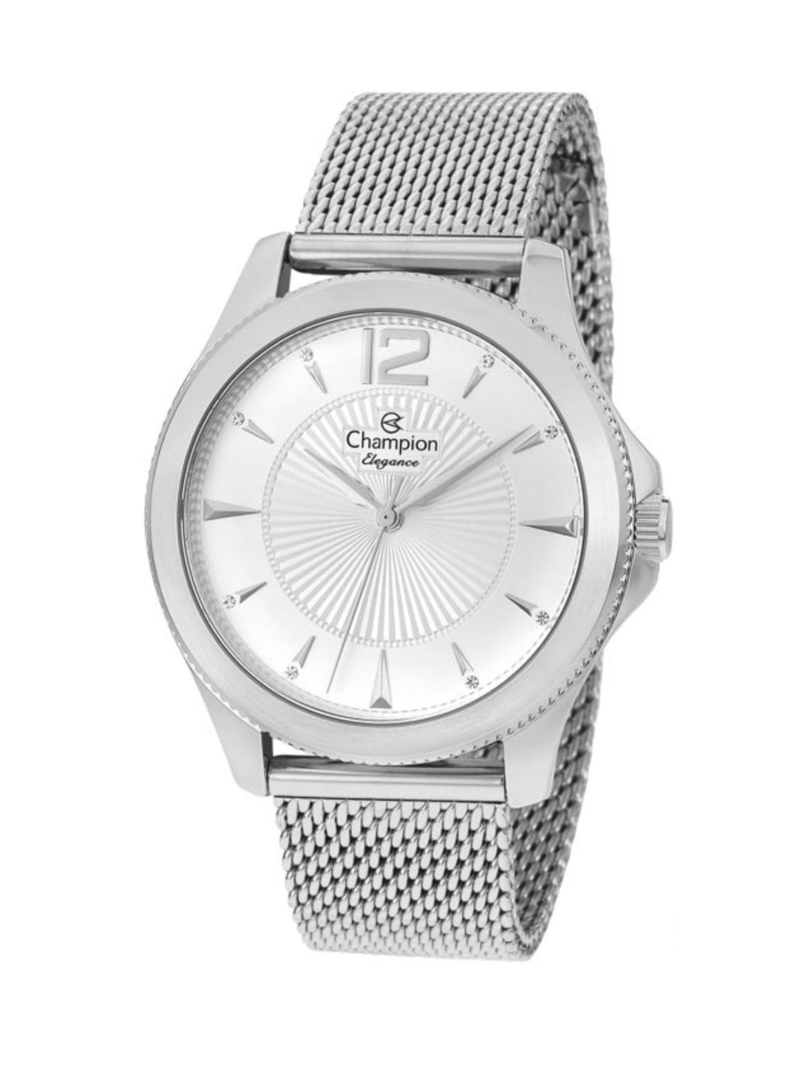 Relógio Champion Feminino Elegance - Prata Com Mostrador Branco E Pulseira De Esteira