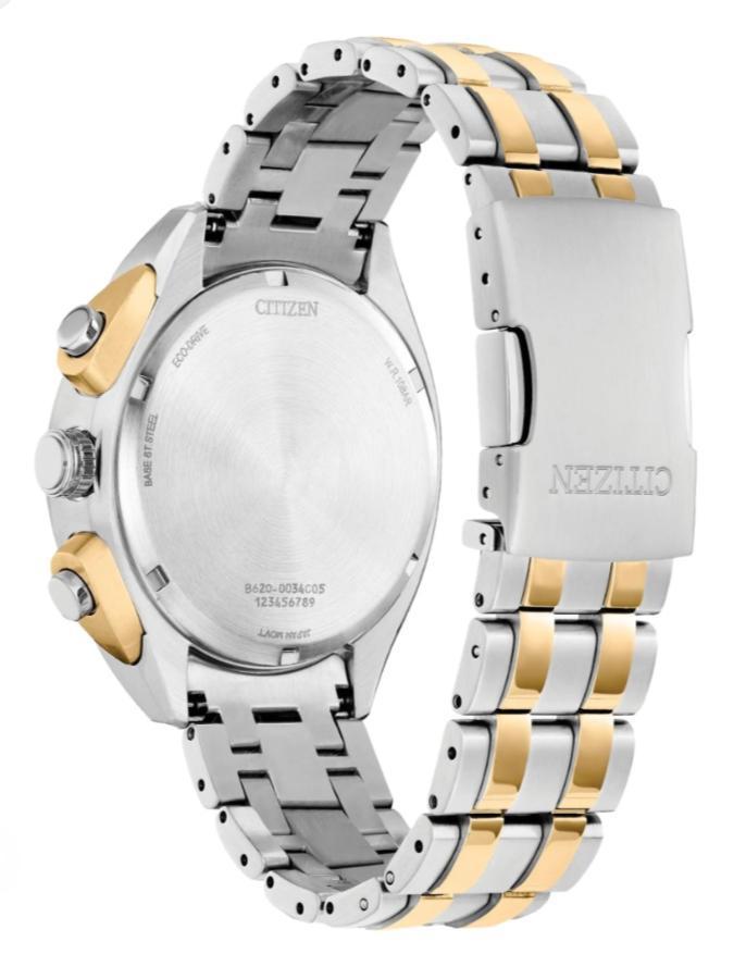 Nossa Mais Nova Adição À Coleção Sport Luxury Oferece Uma Atualização Elegante Para Um Relógio De Luxo. Projetado Para Ser Versátil, Mas Elevado E Apresentando Umcaixa De Aço Inoxidável Prateada Com Construção De 3 Peças E Mostrador Preto Com Data, Hora De 12/24 Horas, Cronógrafo Que Mede Até 60 Minutos, Taquímetro E Cristal De Safira. A Pulseira De Aço Inoxidável Possui Um Fecho Dobrável Com Botões Para Facilitar O Acesso. Resistente À Água Até 100 Metros E Com A Tecnologia Sustentável Eco-drive Da Citizen, Alimentada Por Qualquer Luz Que Nunca Precise De Bateria, Este Impressionante Relógio Masculino Faz A Transição Perfeita Do Dia Para A Noite Com Estilo. Calibre B620.